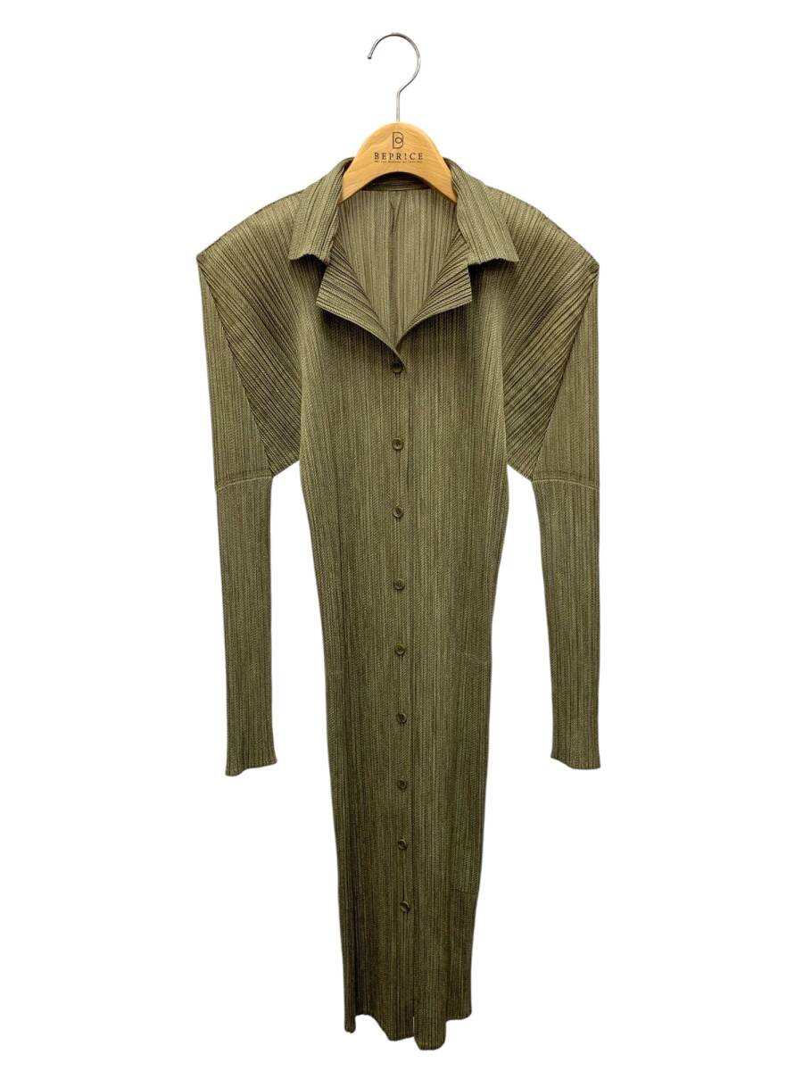 プリーツプリーズイッセイミヤケ PP73-JK225 シャツワンピース 3 カーキグリーン プリーツ ITAK3BCJSDWG