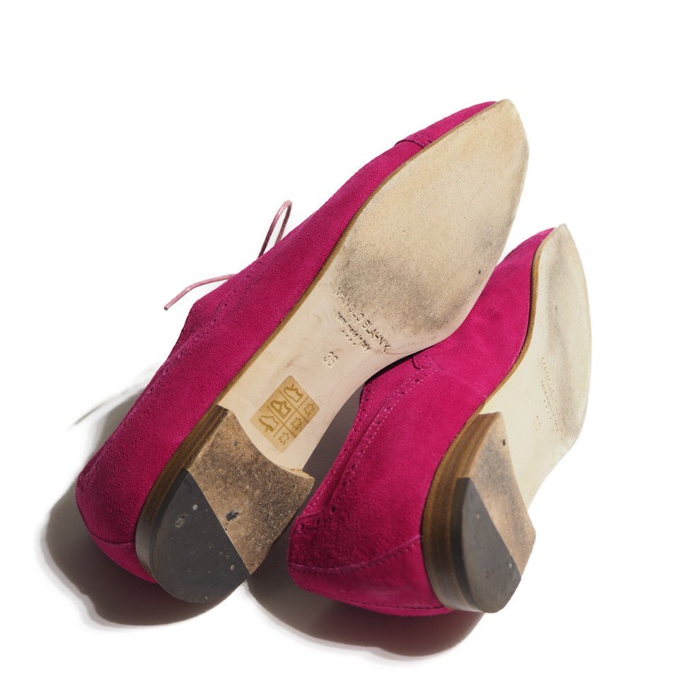 R2097R13 ▼MANOLO BLAHNIK マノロブラニク▼ レースアップ スエード シューズ ピンク 36/23cm レザーシューズ レディース 秋~春