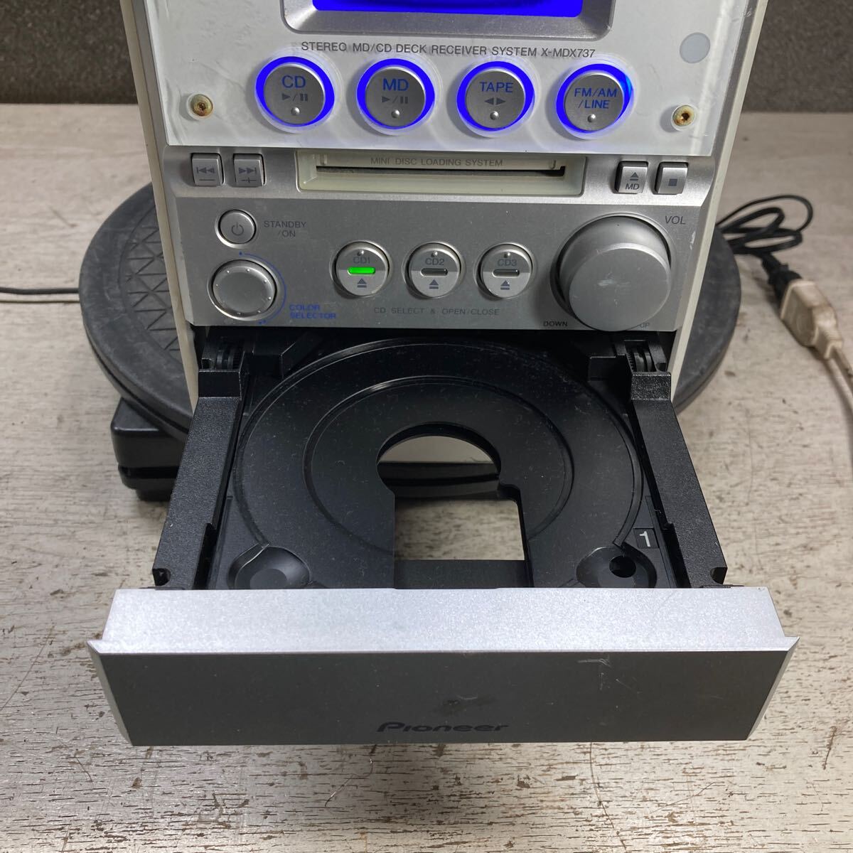 MYM9-749 激安 PIONEER STEREO MD/CD CASSETTE DECK RECEIVER XR-MDX73S 通電、電源オン、オフOK 中古現状品 ※3回再出品で処分