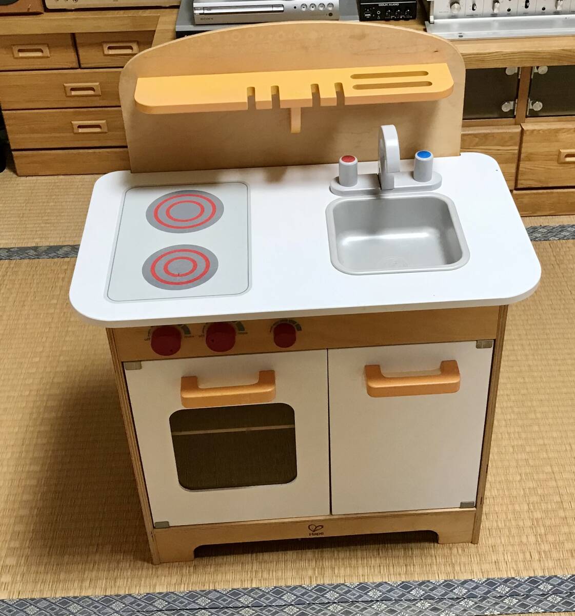 ハペのグルメキッチンは、日常の遊びに創意工夫や社会性を養う要素を加えた、プレイフリーデリシャスシリーズの一つ。赤・オレンジ・黒・グレーのアクセントカラーは、女の子にも男の子にも。プレイフリーデリシャスシリーズの他のアイテムと組み合わせて、ぐっと充実したキッチンに。