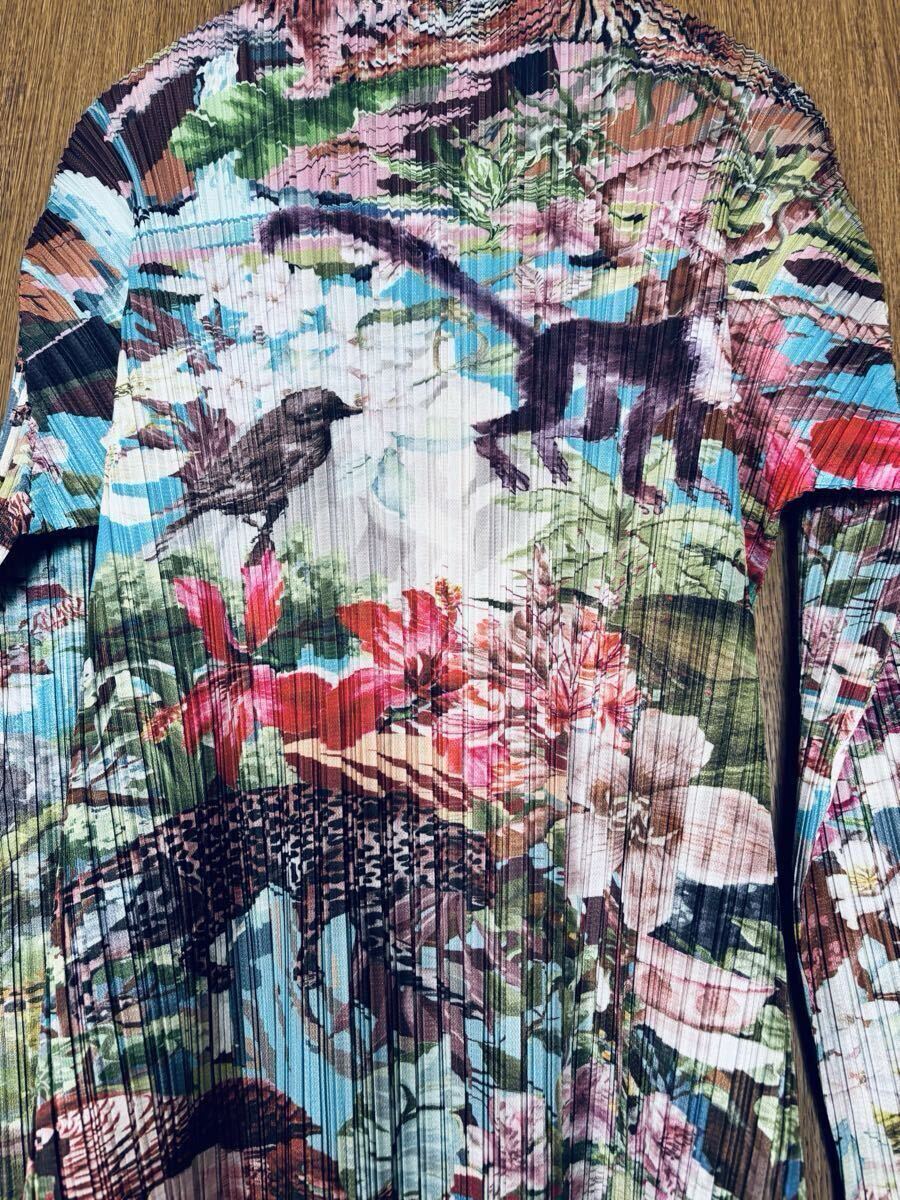 高級 PLEASE 加工・着丈83 cm・胸幅37 cm・肩幅28 cm・袖丈54 cm・花やか総柄・稀少品・伸縮性あり・透け感なし・中厚手・生地とっても良い・光沢あり・作りはとっても丁寧・おしゃれな方お勧めです・