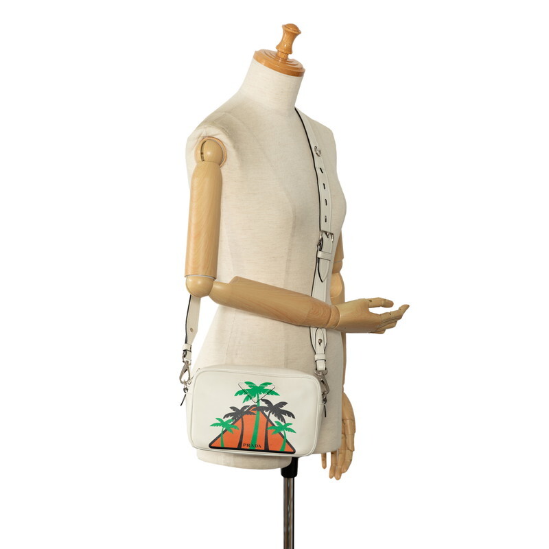 プラダ ヤシの木 斜め掛け ショルダーバッグ 1BH093 オフホワイト マルチカラー レザー レディース PRADA 【中古】