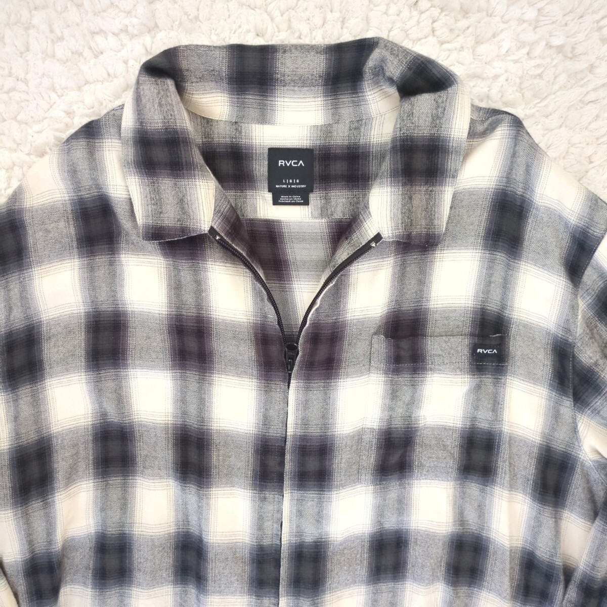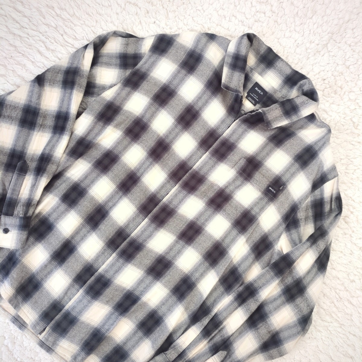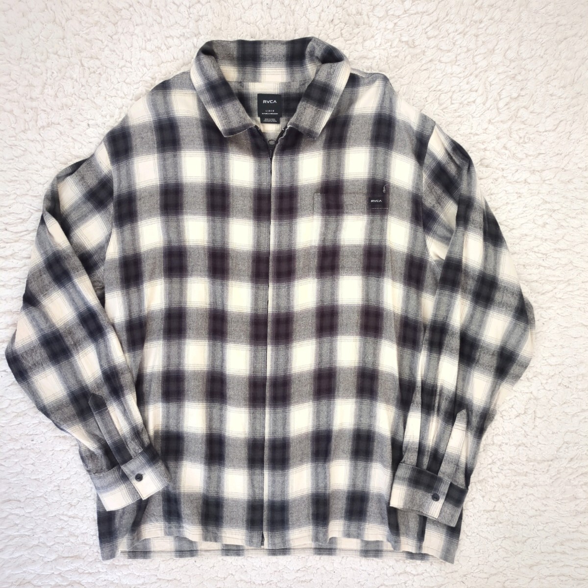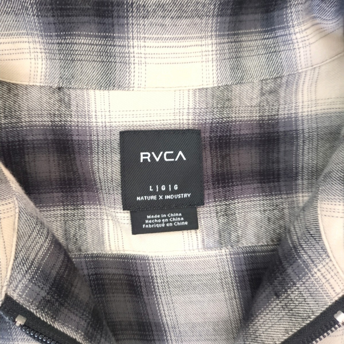 RVCA メンズ ABOBE SHIRT ロングスリーブシャツ 2023年モデル ネルシャツ オンブレチェック 長袖シャツ フロントジップ Lサイズ ルーカ
