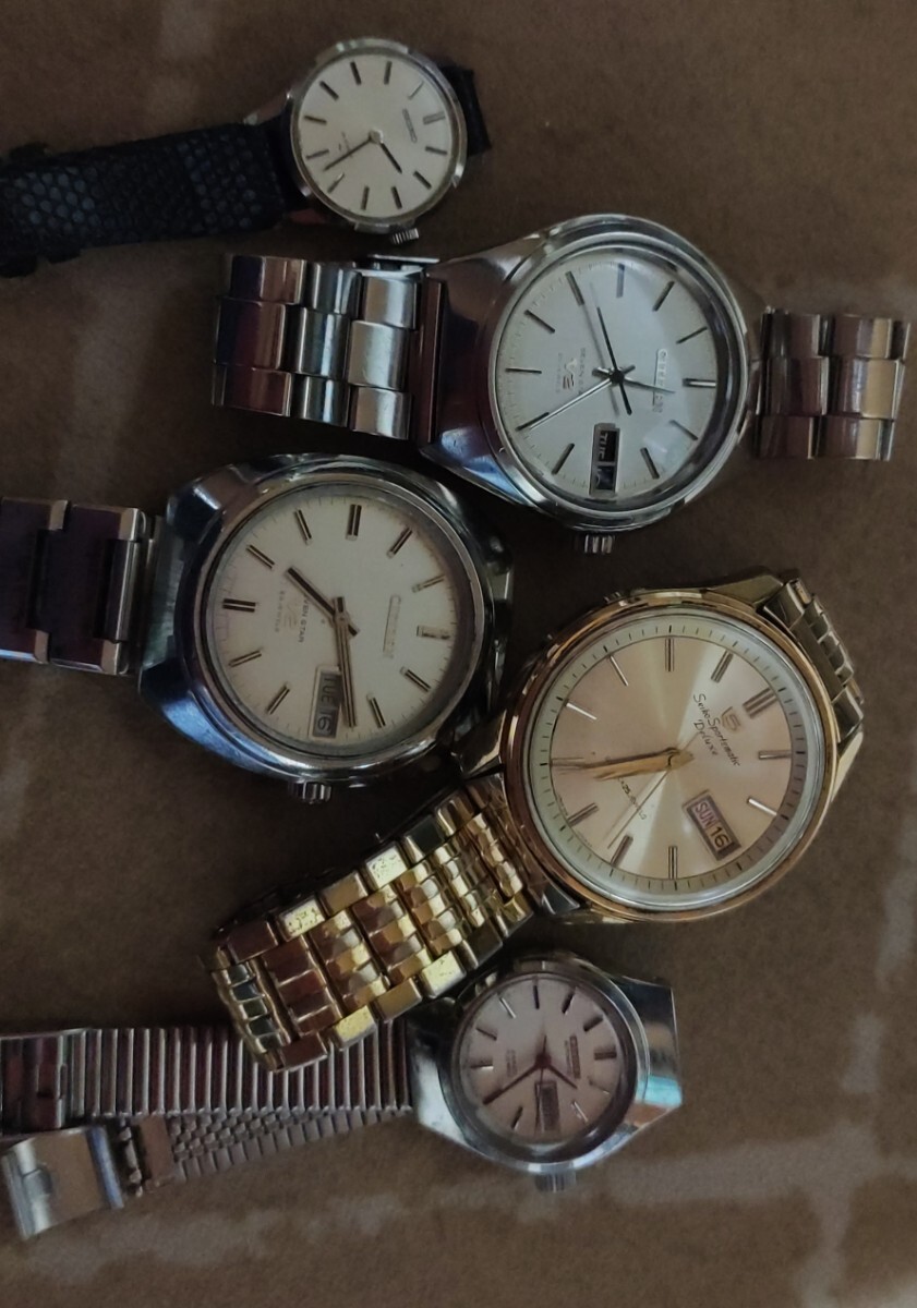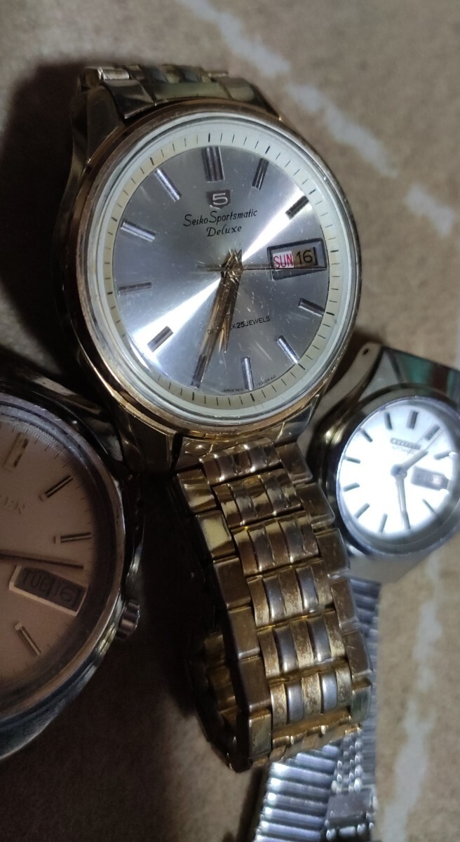 自動巻きseiko 5 sportsmatic delux.プラ風防細かいヒビがあります。