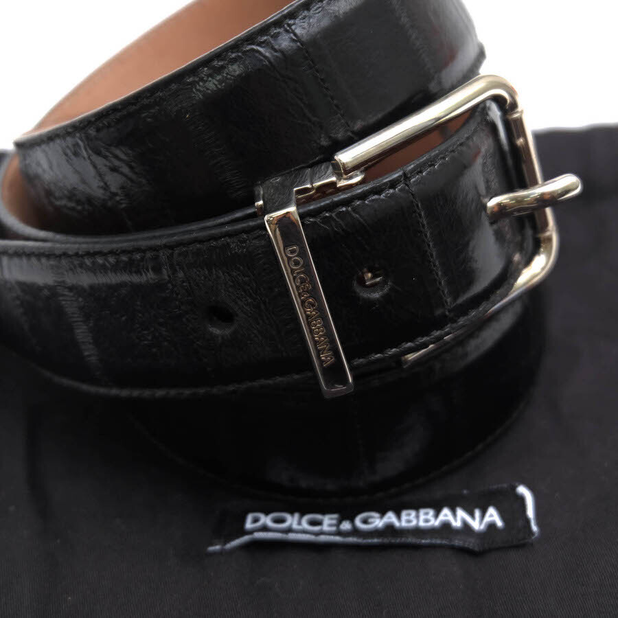 表革に贅沢にもイールスキンを用いたドルガバらしいラグジュアリーなレザーベルト。ビジネスユースにも最適な、細めのベルトにシンプルなバックルで様々なスタイルに合わせやすいアイテムです。 |