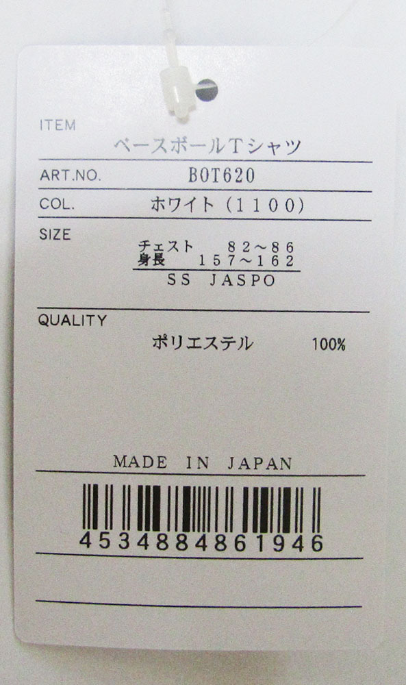 ZETT ゼット BOT620 野球 ベースボールTシャツ ホワイト SS