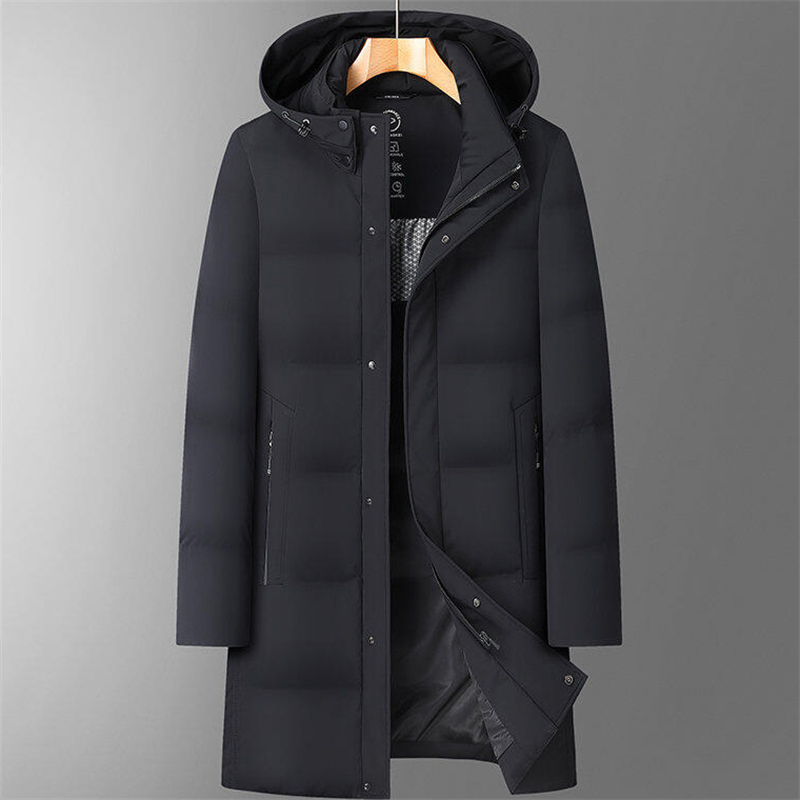 A729-2XL ダウンコート メンズ ダウン90% ベンチコート 高級 撥水 膝下コート 厚地 超ロングコート 冬 防寒  防風 暖かい/ブラック