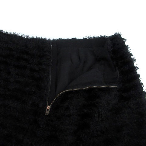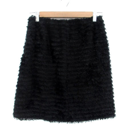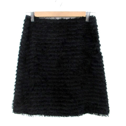 マカフィー MACPHEE トゥモローランド フレアスカート ミニ丈 フリンジ 38 M 黒 ブラック /HO22 レディース