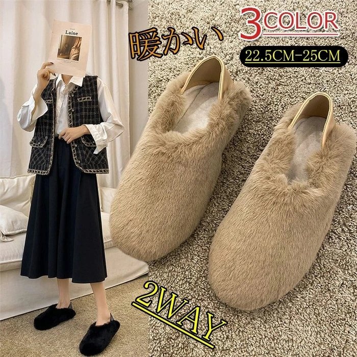 レディース ふわふわ ドライビングシューズ 2WAY スリッポン モカシン ボア ふわふわ 防寒 履きやすい 柔らかい 暖かい 冬靴 軽量(カーキ