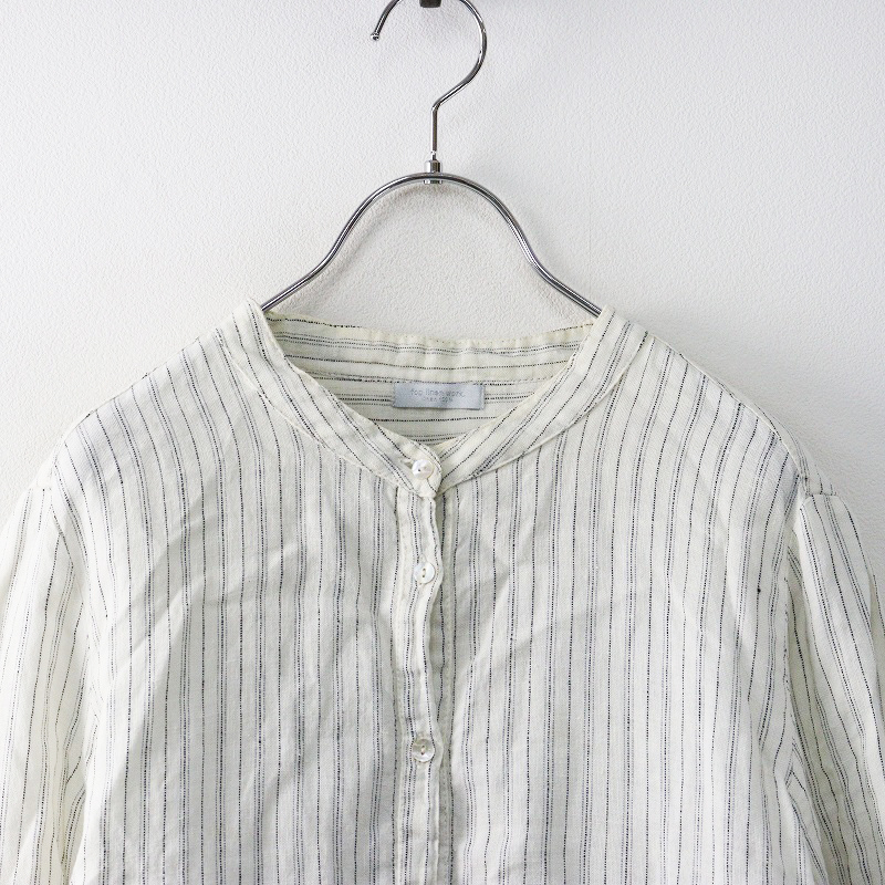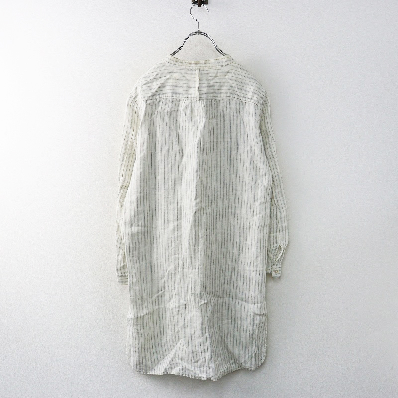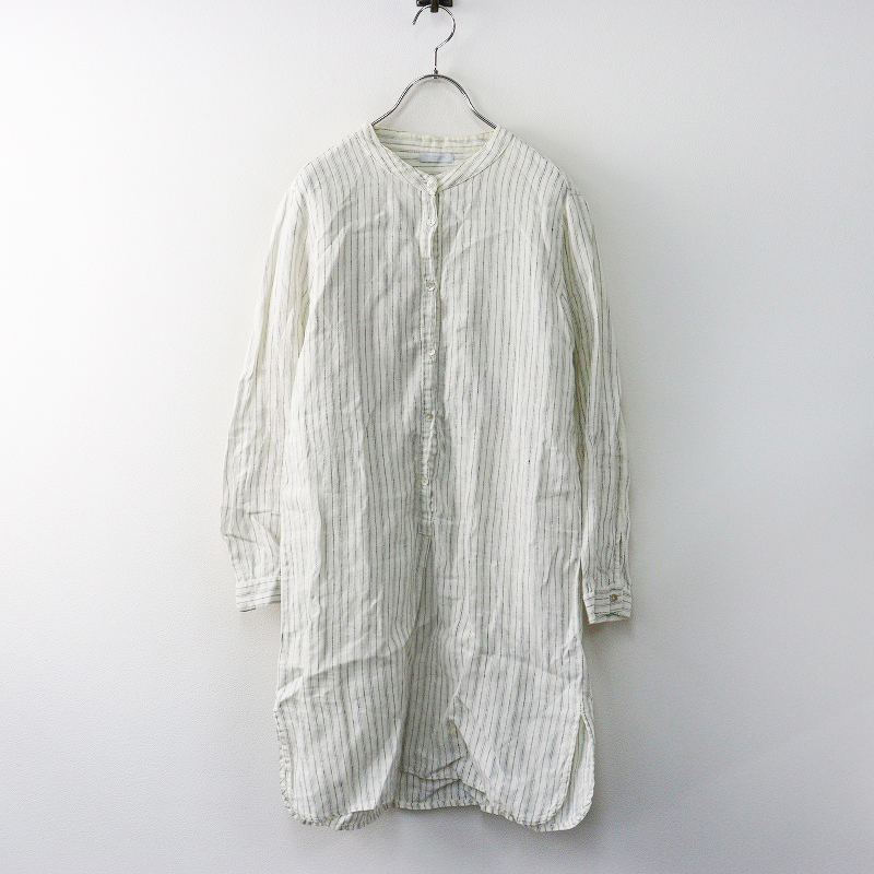 フォグリネンワーク fog linen work リネン100 ストライプ バンドカラー チュニック‖アイボリー ワンピース シャツ 長袖【2400014605815】