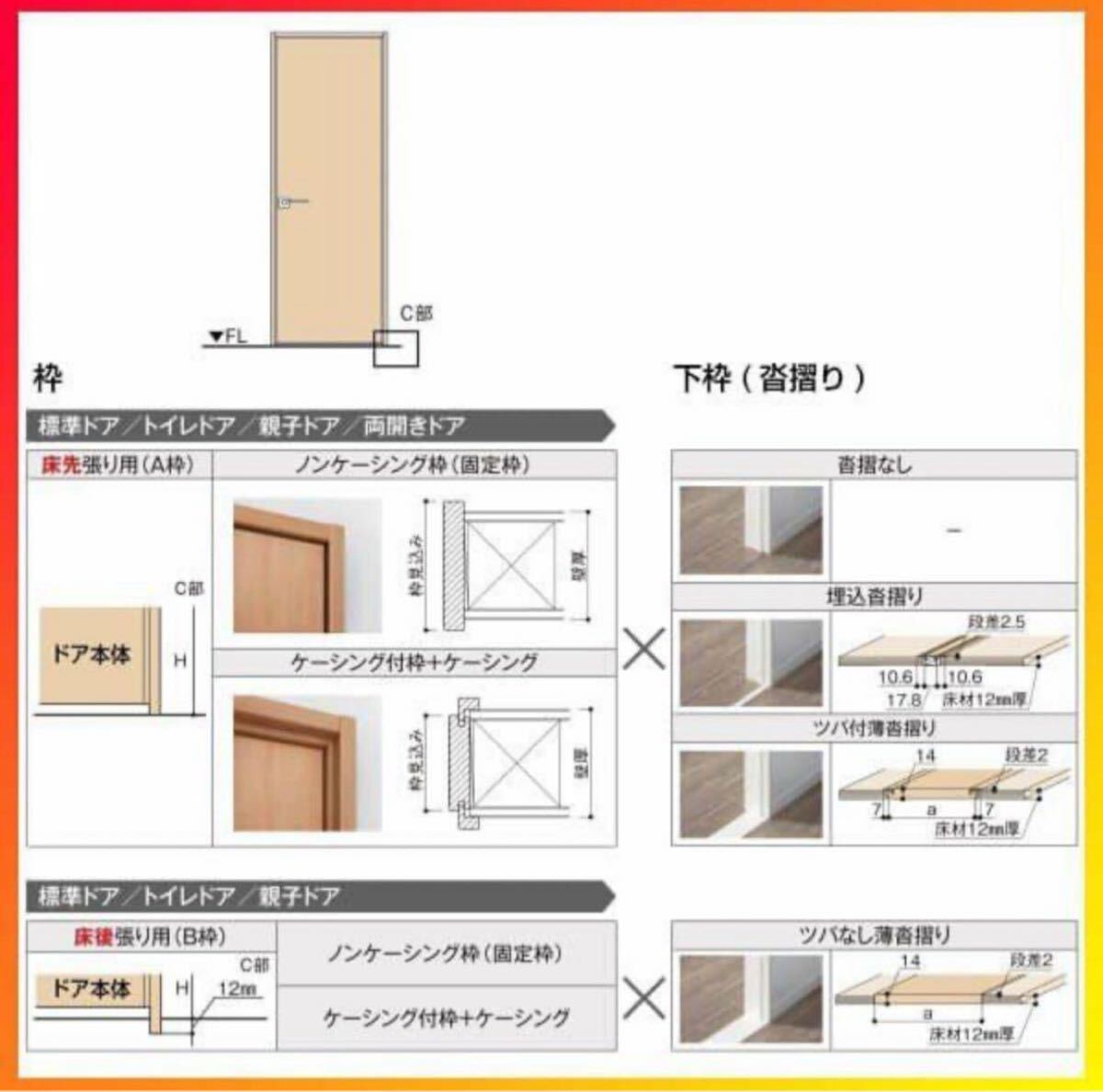 また、枠は三方枠、四方枠から選ぶことができ、錠付のドアもお選びできるのでプライベートルームやトイレドア等としても使うこともできます。