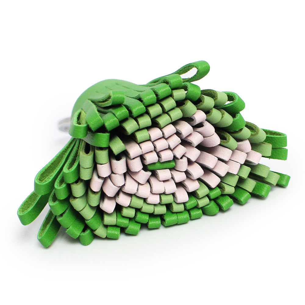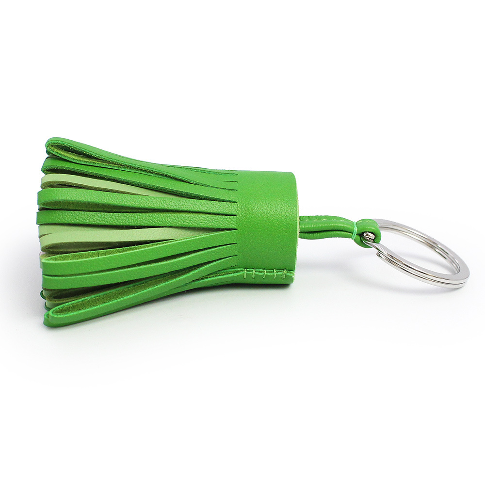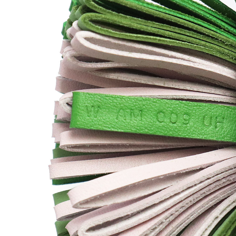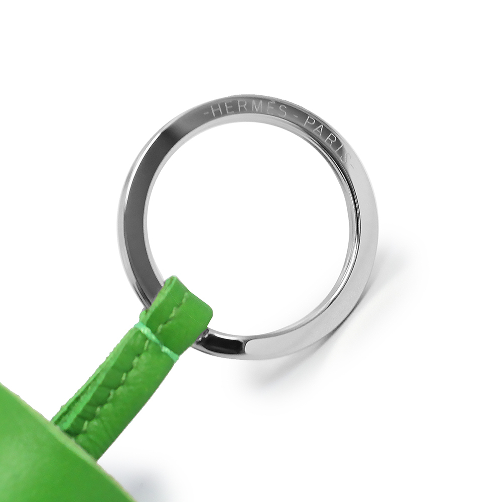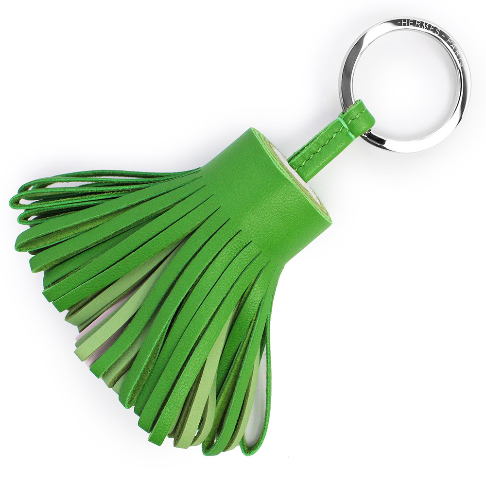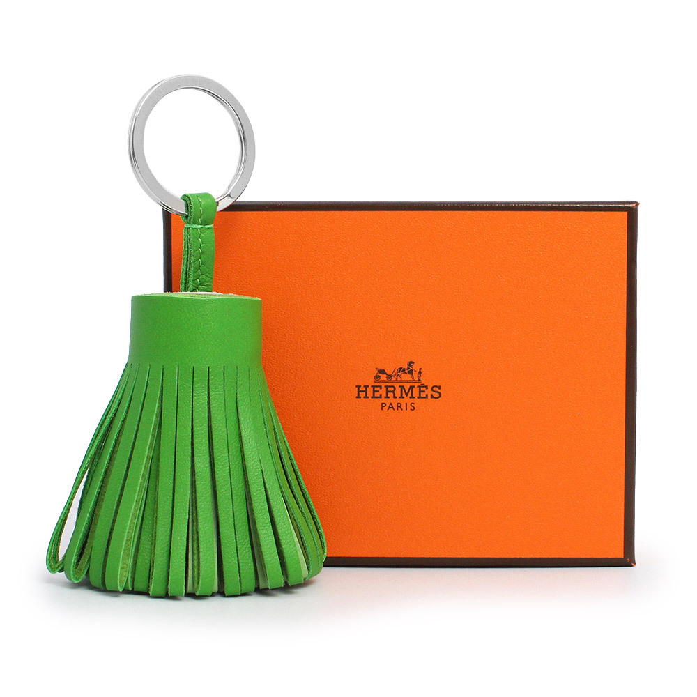 (未使用 展示品)エルメス HERMES カルメン トリコロール トリプルカラー キーリング バッグチャーム レザー グリーン ピンク W刻印