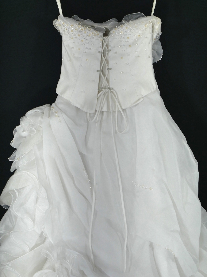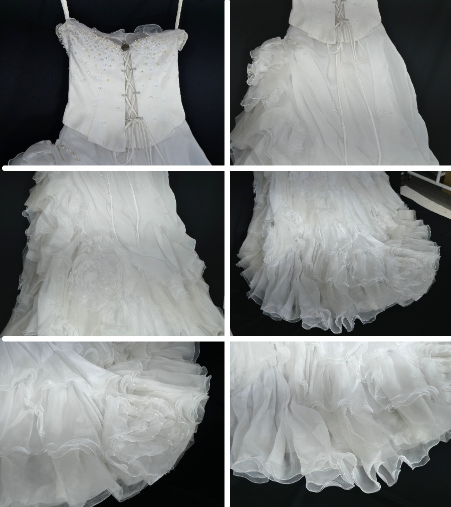 状態 使用品 貸衣装 結婚式場で実際に使用されていた高品質のウエディングドレスです。 24時間空調管理された部屋にて大切に保管されておりました。 中古品ですので使用感はございます。また、樹脂製ビーズに変色とレースに破れが見られます。 ↓ ![]() その他、状態は画像参照下さい。 詳細 | サイズ:記載がない為、不明 その他、詳細は画像参照下さい。 ※商品は中古品です。 表記・記載のないシミ・ヤケ・ダメージ、ほつれ等がある場合がございますことあらかじめご了承ください。 また汚れなどの見解に関しましては個人差がございますので完璧を求められる方・また細かな点まで気になられる方はご入札をお控えください。 モニターにより色見に若干の違いが出る場合がございます。色見に関するキャンセルはお受けできません。ご了承下さい。 ※梱包には、再生ダンボールを使用しております。ご了承くださいませ。 ※送料表をご確認の上、入札のご検討をお願い致します。また、まとめて取り引きのみ同時発送いたします。 取り置きには対応できません。 どうぞよろしくお願いします。 返品について |