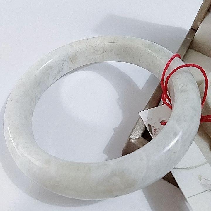 天然翡翠厚重のホワイト、漂花のバングルとなります♪