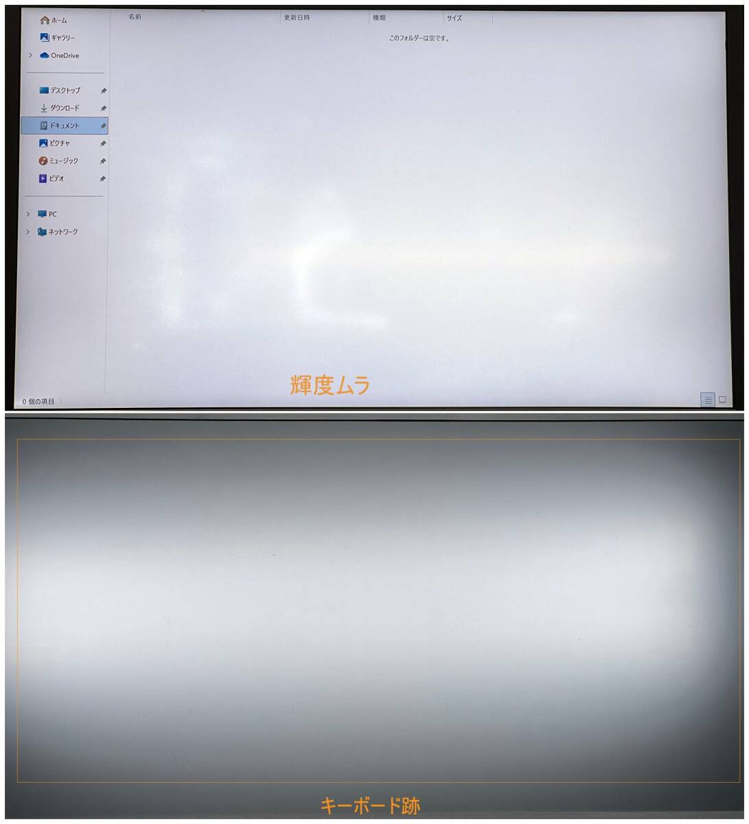 | 液晶 | キーボード跡と輝度ムラがあります。 |