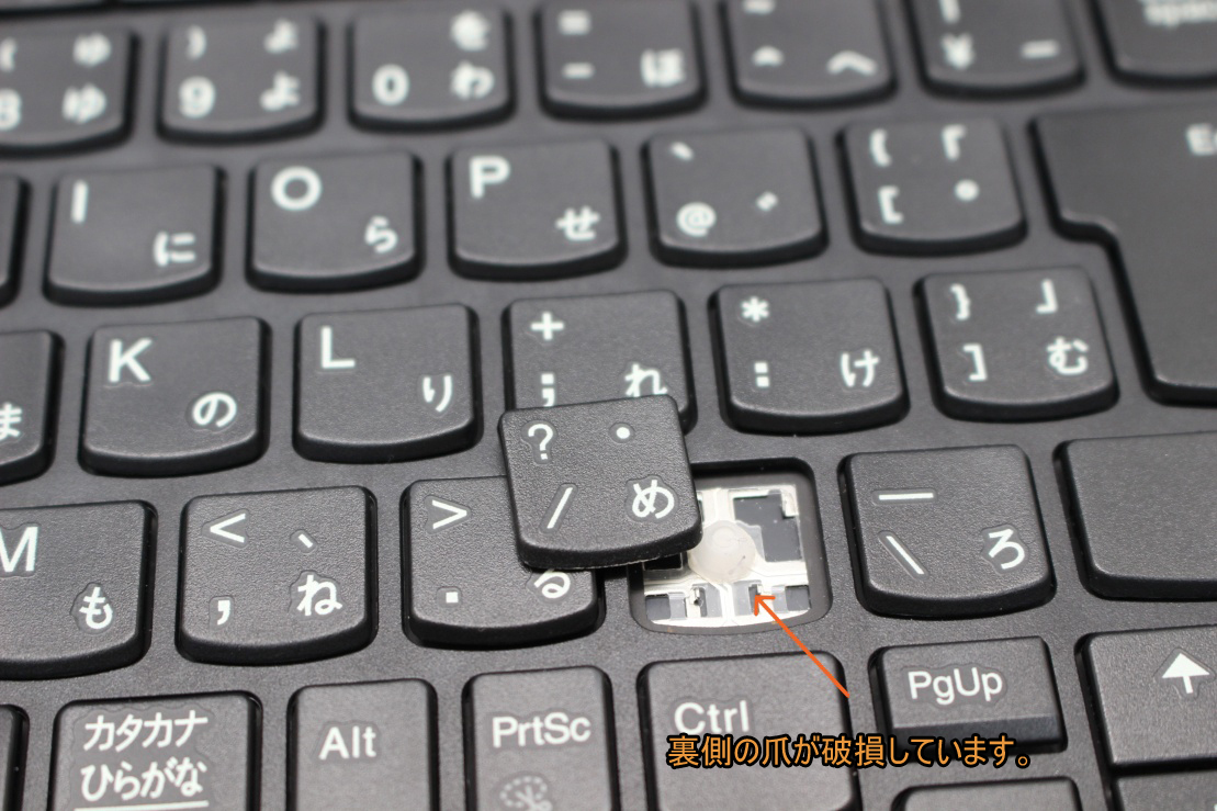 | キーボード | 写真を示しように【/】のキートップキが外れた。( 裏側のツメが破損しています。 *入力可能です) |