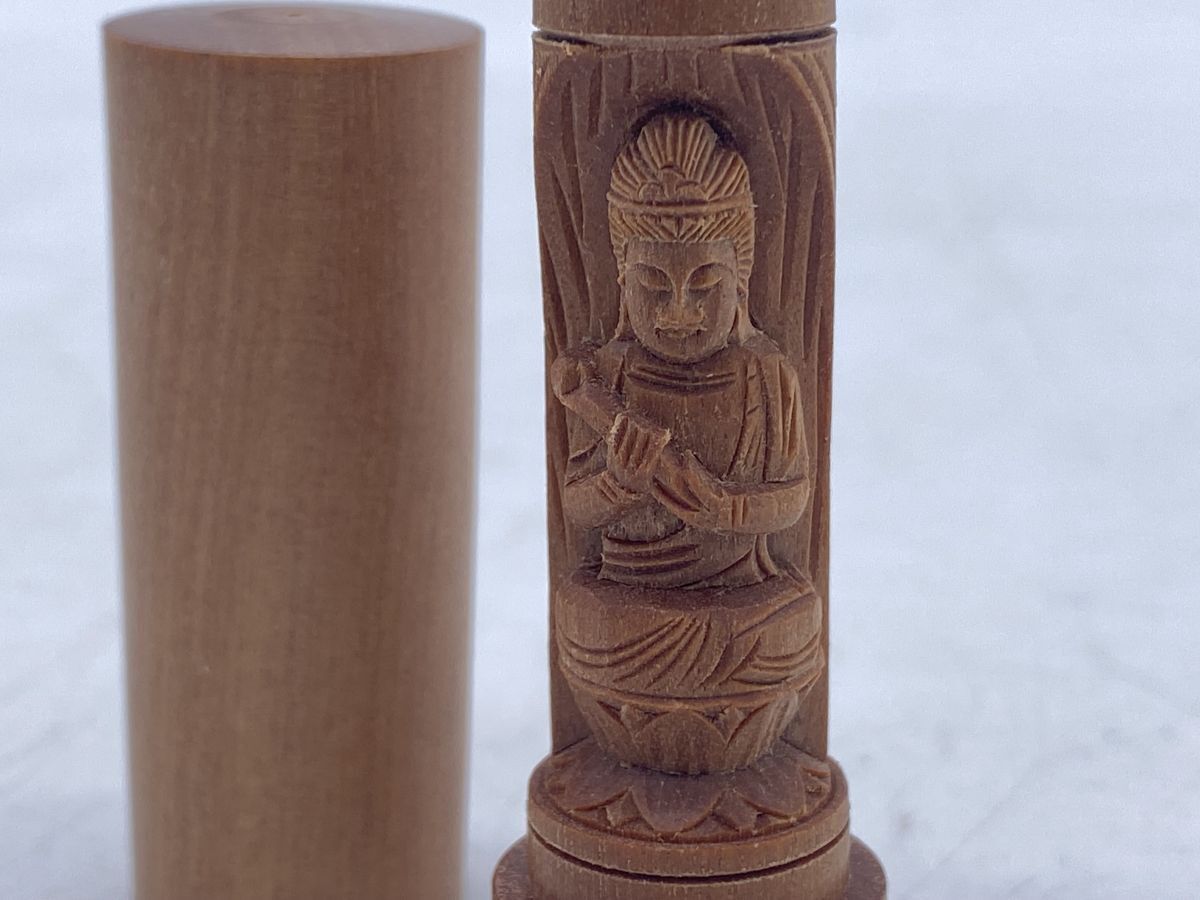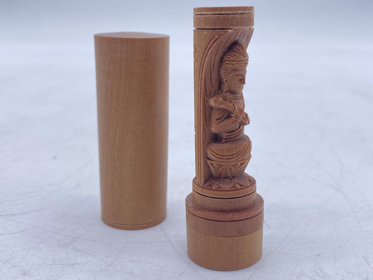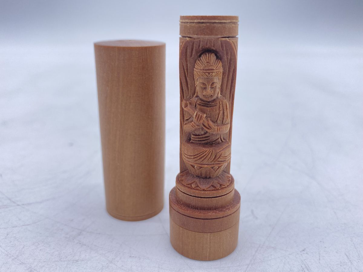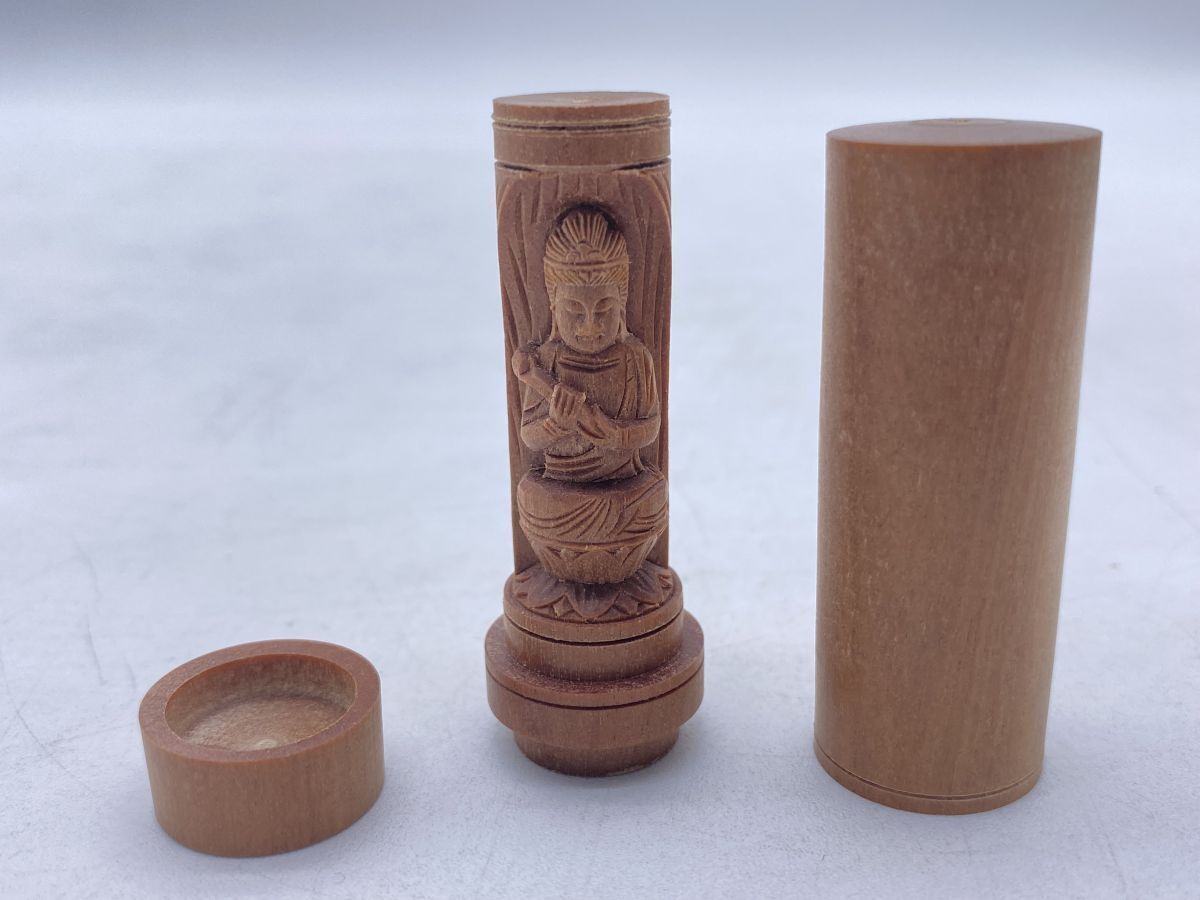 夏永真作 勢至菩薩 白檀 懐中十二支御守本尊 開運印鑑 香木 仏像(13262)