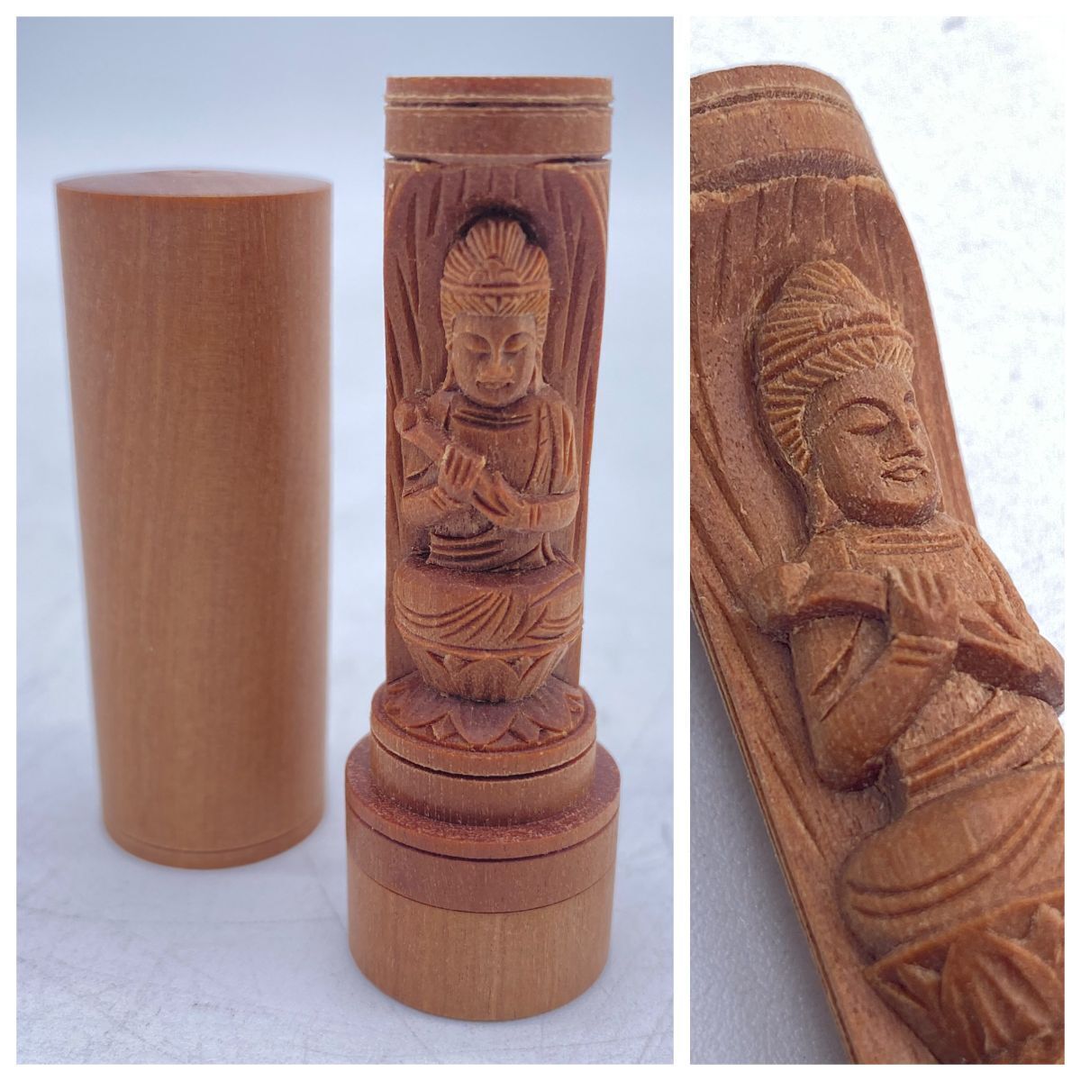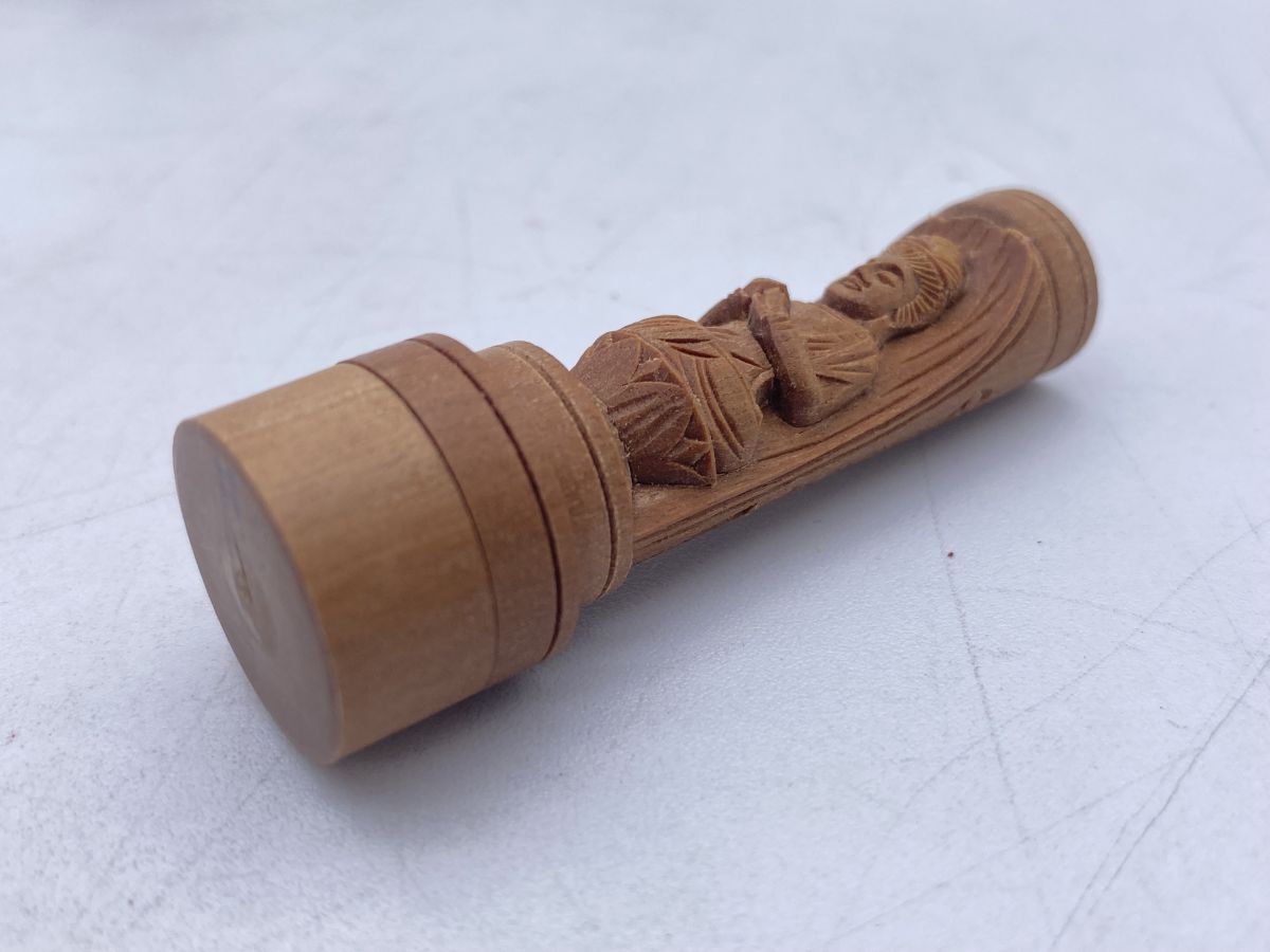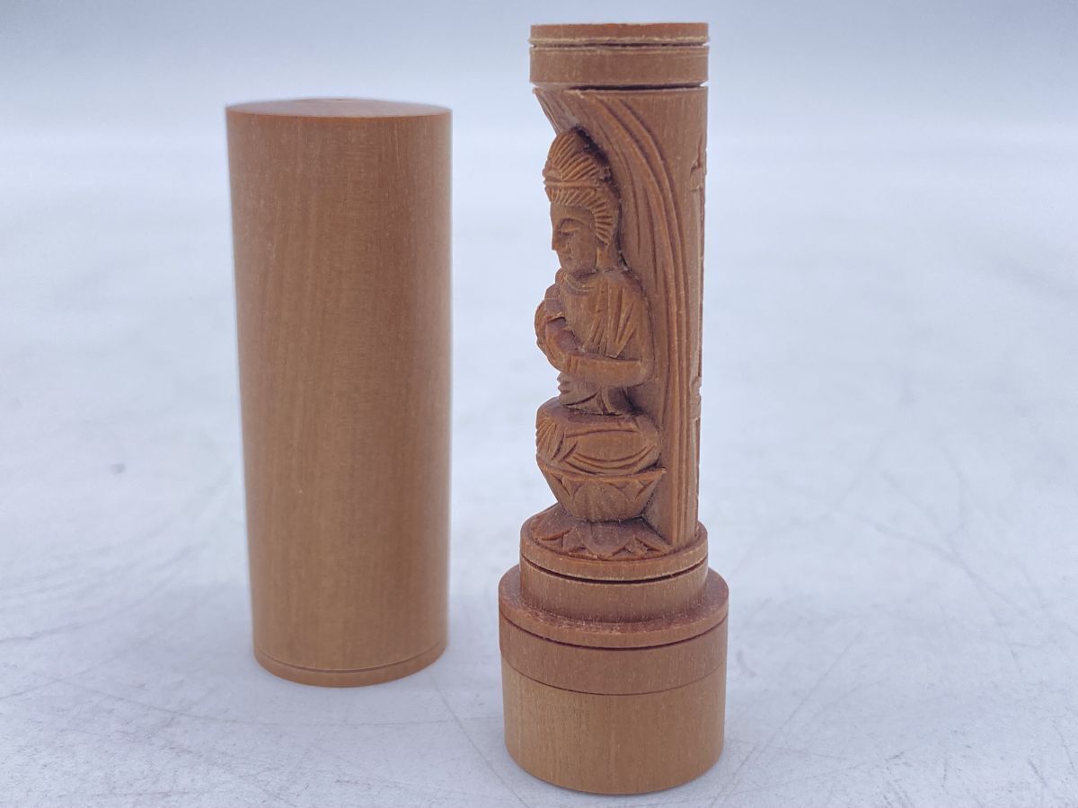 夏永真作 勢至菩薩 白檀 懐中十二支御守本尊 開運印鑑 香木 仏像(13262)