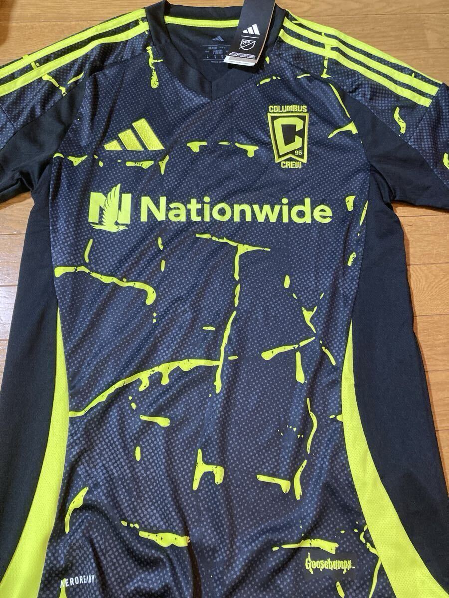 ブラックの地に紫外線に反応するイエローの「スライム」が滴り落ちているようなデザインが目を引くアディダス コロンバス・クルー アウェイジャージー。『グースバンプス』シリーズにインスパイアされた大胆なデザインのジャージーには、チームエンブレムを縫い付け、さらに『グースバンプス』のロゴのジョックタグもあしらっている。吸湿性を発揮するAEROREADYテクノロジーを採用した柔らかい生地で作られた、快適な着心地のサポーター仕様。 定形外郵便 320円 レターパックになります。 ヤマト便 【770円 の地域 】 山形県、宮城県、福島県、茨城県、栃木県、群馬県、埼玉県、千葉県、東京都、神奈川県、山梨県、新潟県、長野県、富山県、石川県、福井県、静岡県、愛知県、岐阜県、三重県、滋賀県 【880円 の地域 】 青森県、岩手県、秋田県、京都府、大阪府、兵庫県、奈良県、和歌山県 【990円 の地域 】 鳥取県、岡山県、島根県、広島県、山口県、香川県、徳島県、愛媛県、高知県 【1210~1870円 の地域 】 北海道、福岡県、佐賀県、大分県、熊本県、長崎県、宮崎県、鹿児島県、沖縄県 カラーや詳細が気になる方は品番より検索の上、入札してください。 発送まで2~3日かかる場合があります。 |