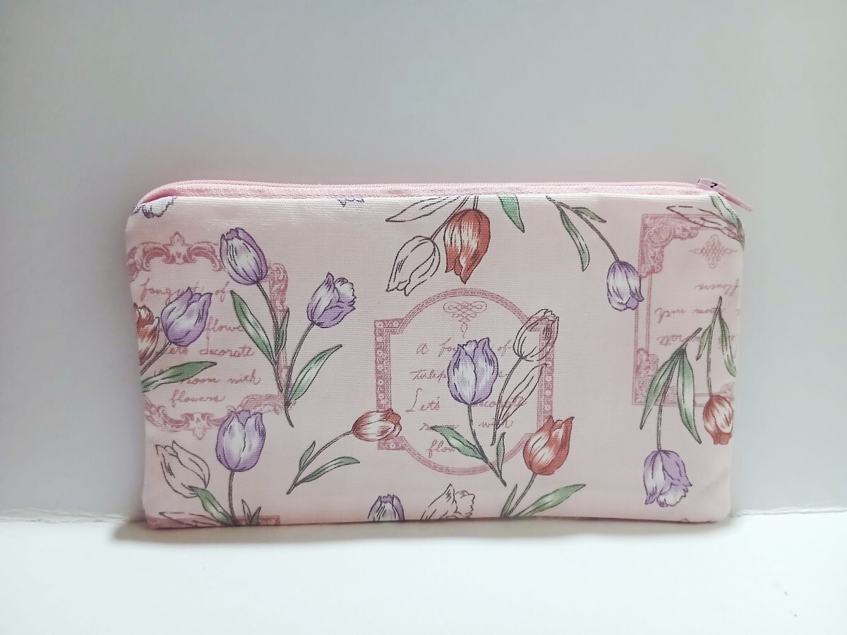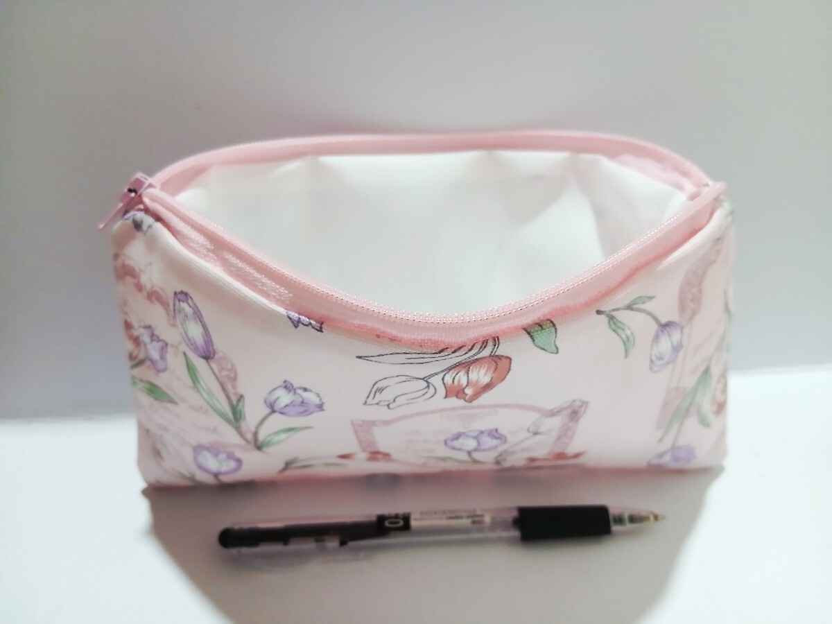 ペタンコ仕様の横長フラットフリーポーチを作りました