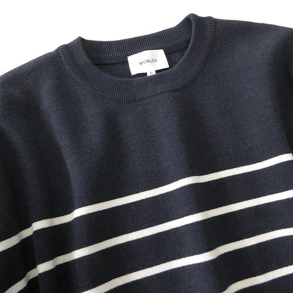 【MORLES(モアレス)】 ビジネスカジュアルブランドとしてBEAMSのコラボレートレーベル『BEAMSdesign』が企画監修。ON寄りのOFFなのか、OFF寄りのONなのか、その境界をあいまいにすることで自分らしさを楽しむ「FRENCH IVY」というスタイルを提案しています。 トレンドの大きめなサイズ感を採用したバスクボーダークルーネックセーター。 インビスタ社が開発した、摩擦に強く破れにくい摩耗性に特化した特殊な糸【コーデュラナイロン】を採用。 ストレッチポリエステル糸を併用することによりストレッチ性もありながら、 ミラノリブ編みというしっかりとした編み地に仕上がっています。 さらにご家庭洗濯可能なウォッシャブル仕様です。 |