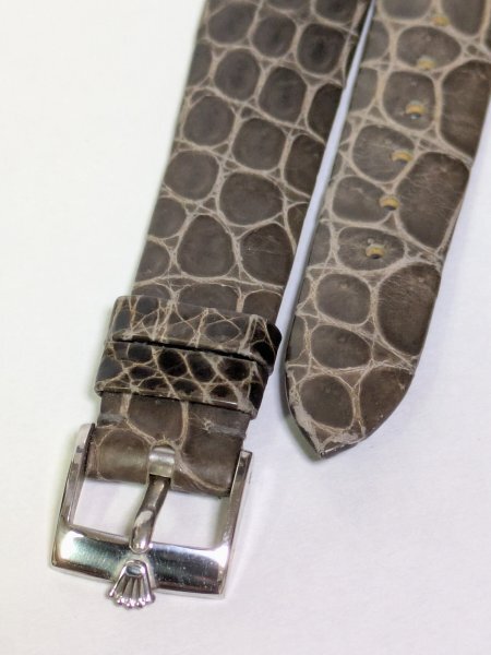 売切 時計店から◆腕時計 バンド◆【ロレックス/Rolex】珍しい 高級感のある 純正時計ベルト SS尾錠 クロコ レザー チャコールグレー色 18mm メンズ 当時物 ★4 ・ロレックスのチャコールグレー色の渋いクロコ本革レザーです。 ・取付幅は18㎜です。 ・年数が経っているベルトですが、今のところ曲げても割れは発生しておりません。 ・これからの秋冬用の1本としていかがでしょうか? ・詳細は写真にてご確認ください。