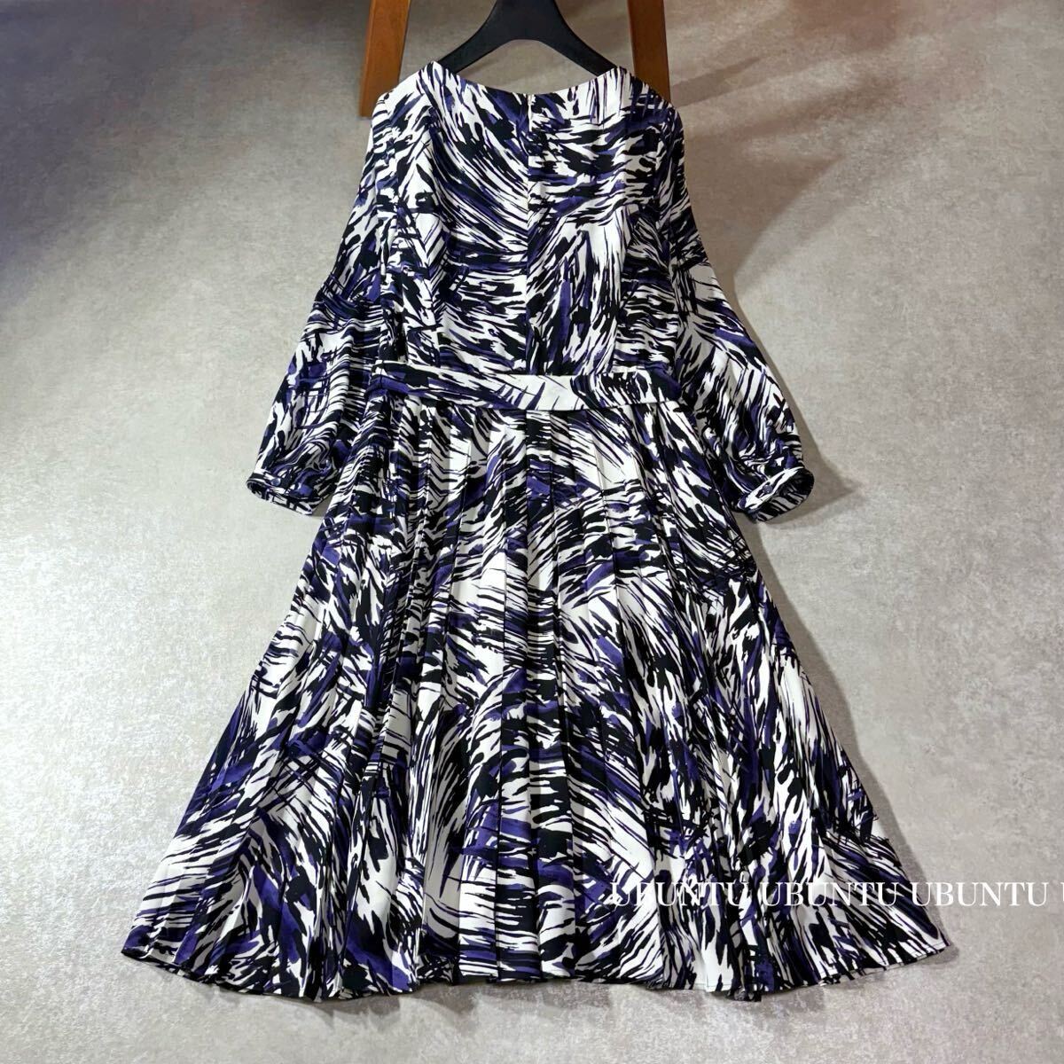 シックに着こなせる大人のバイオレット×ブラックカラーのワンピースロング丈です。