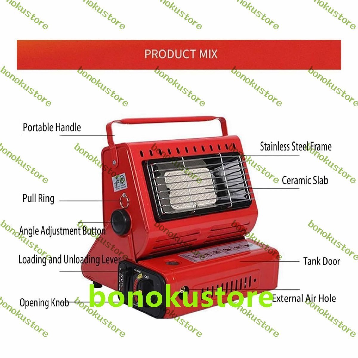 製品名: 屋外ガスストーブ 使用ガス種:ブタンガス/外部ガス 材質:耐高温鋼板+耐高温プラスチック 燃焼消費量: 100G/H サイズ:28.5X24X20CM 重量: 約2.6KG 定格電力: 1.3KW