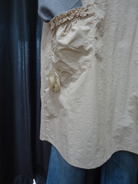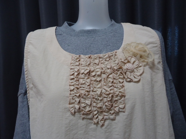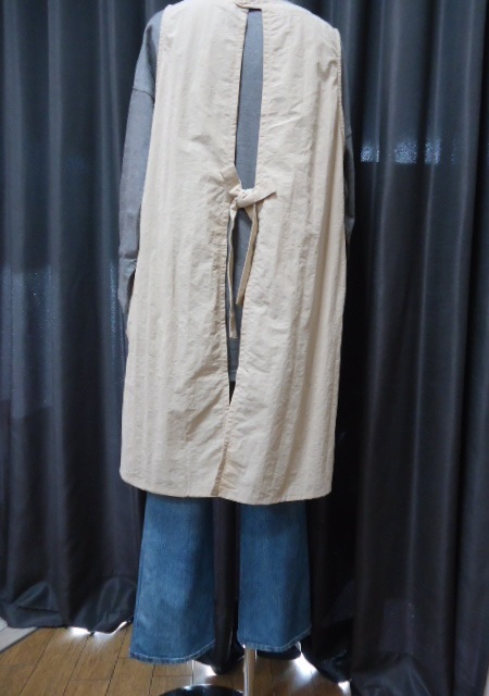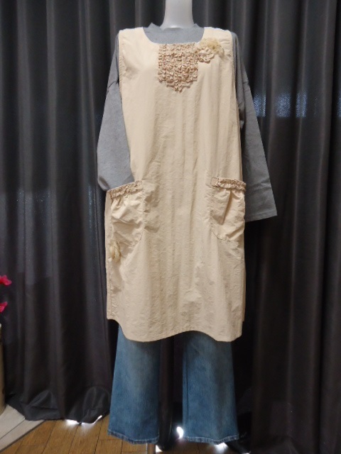 かわいいエプロン  ウエストひも 無地ベージュ色 ★bonte★ ナイロン100% M~L寸 着丈90cm Kー5894