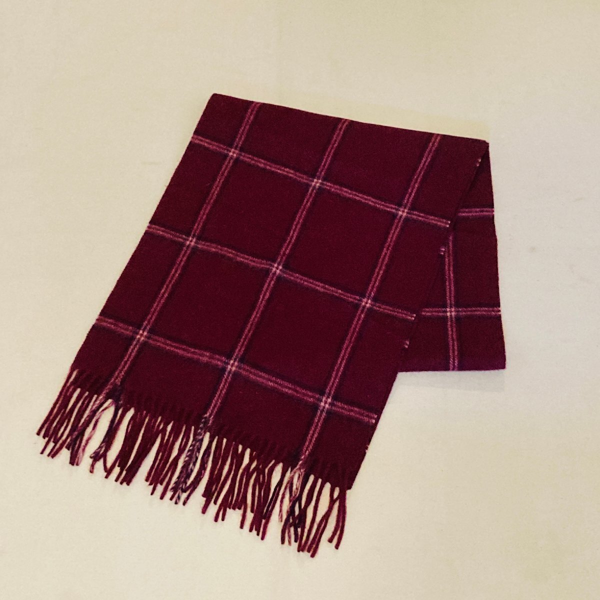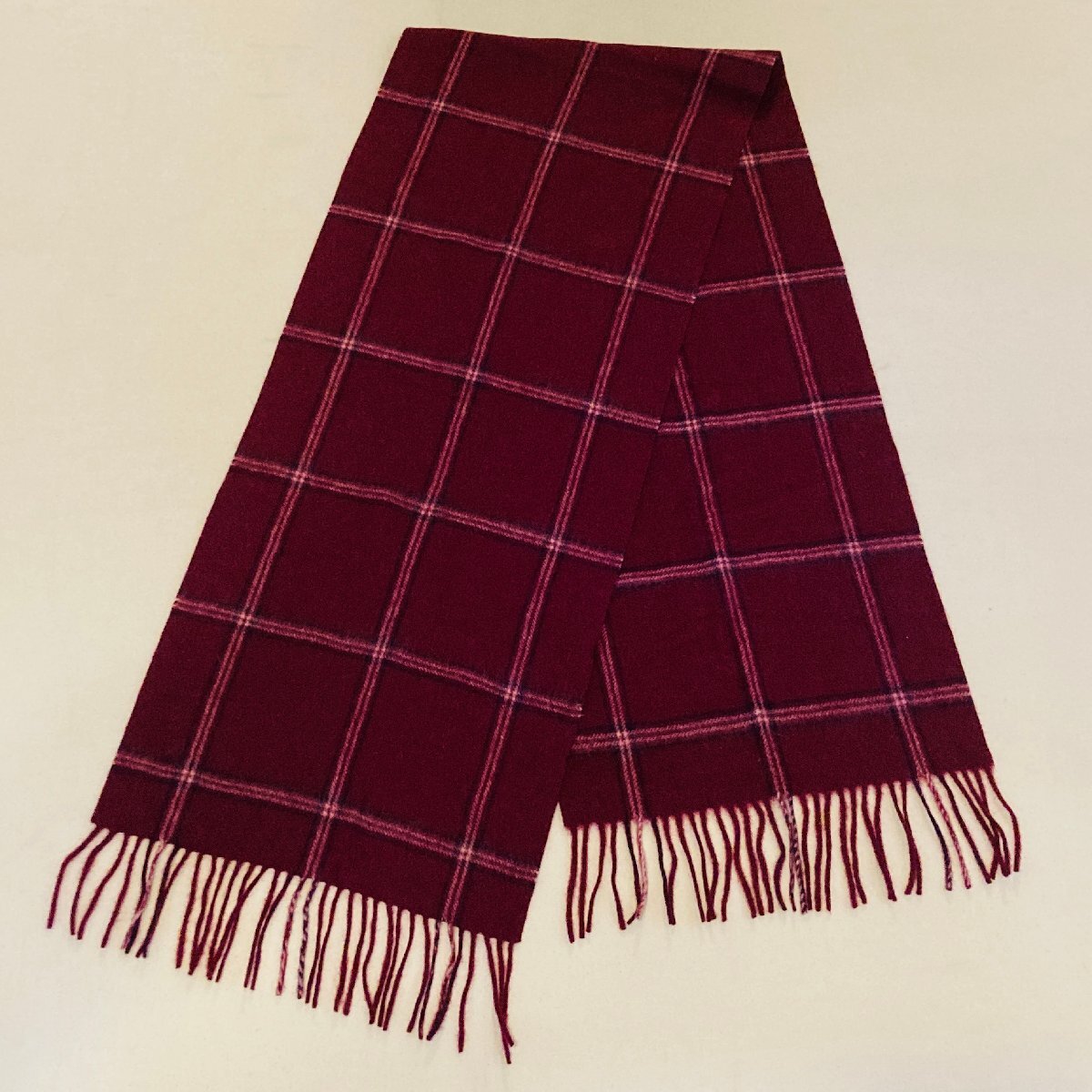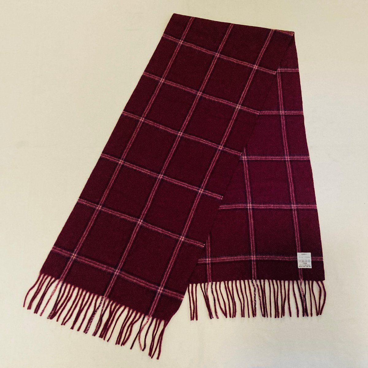 オーロラ製 ウール 100% マフラー パープル/深紫系 チェック 31 × 146cm