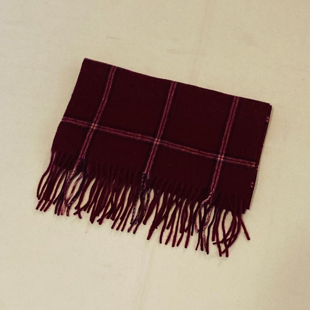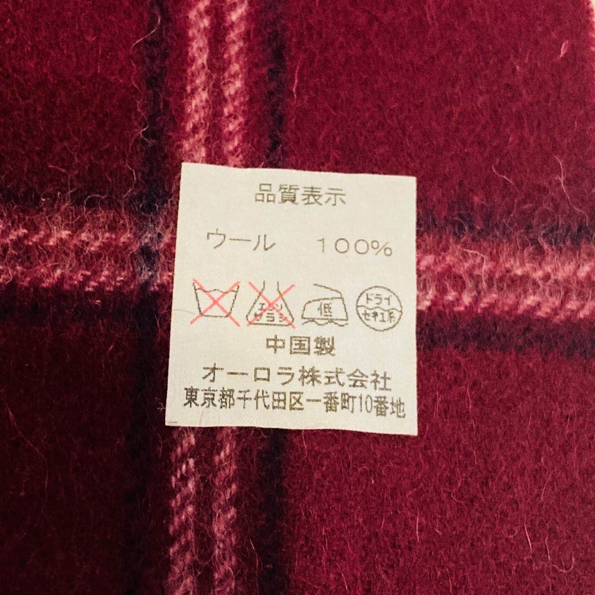 【100円スタート】オーロラ製 ウール 100% マフラー パープル/深紫系 チェック 31 × 146cm
