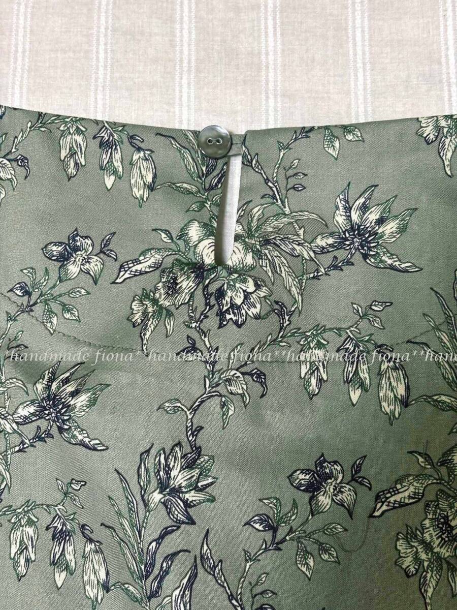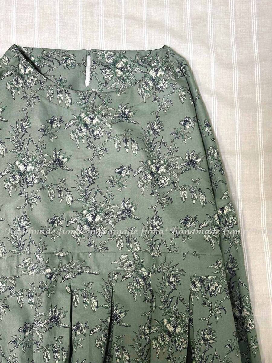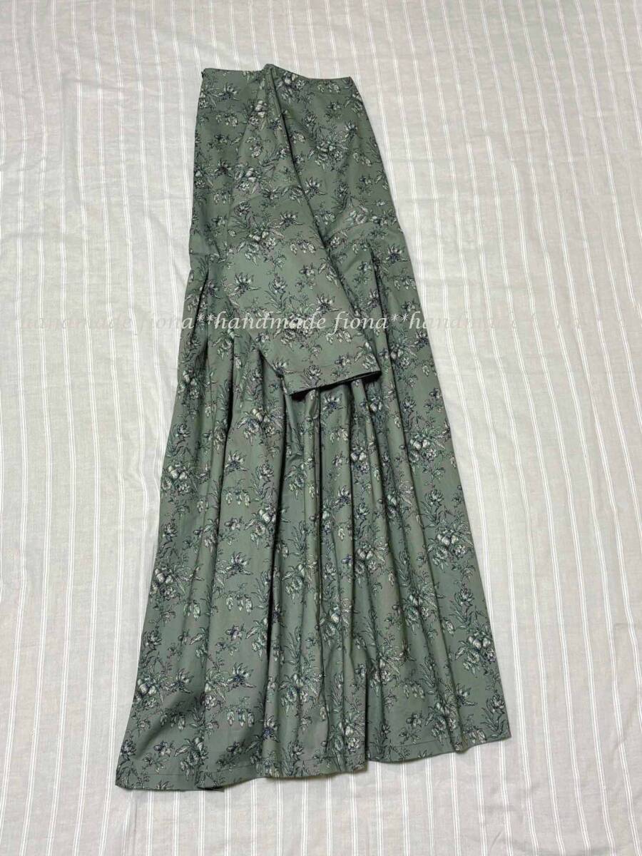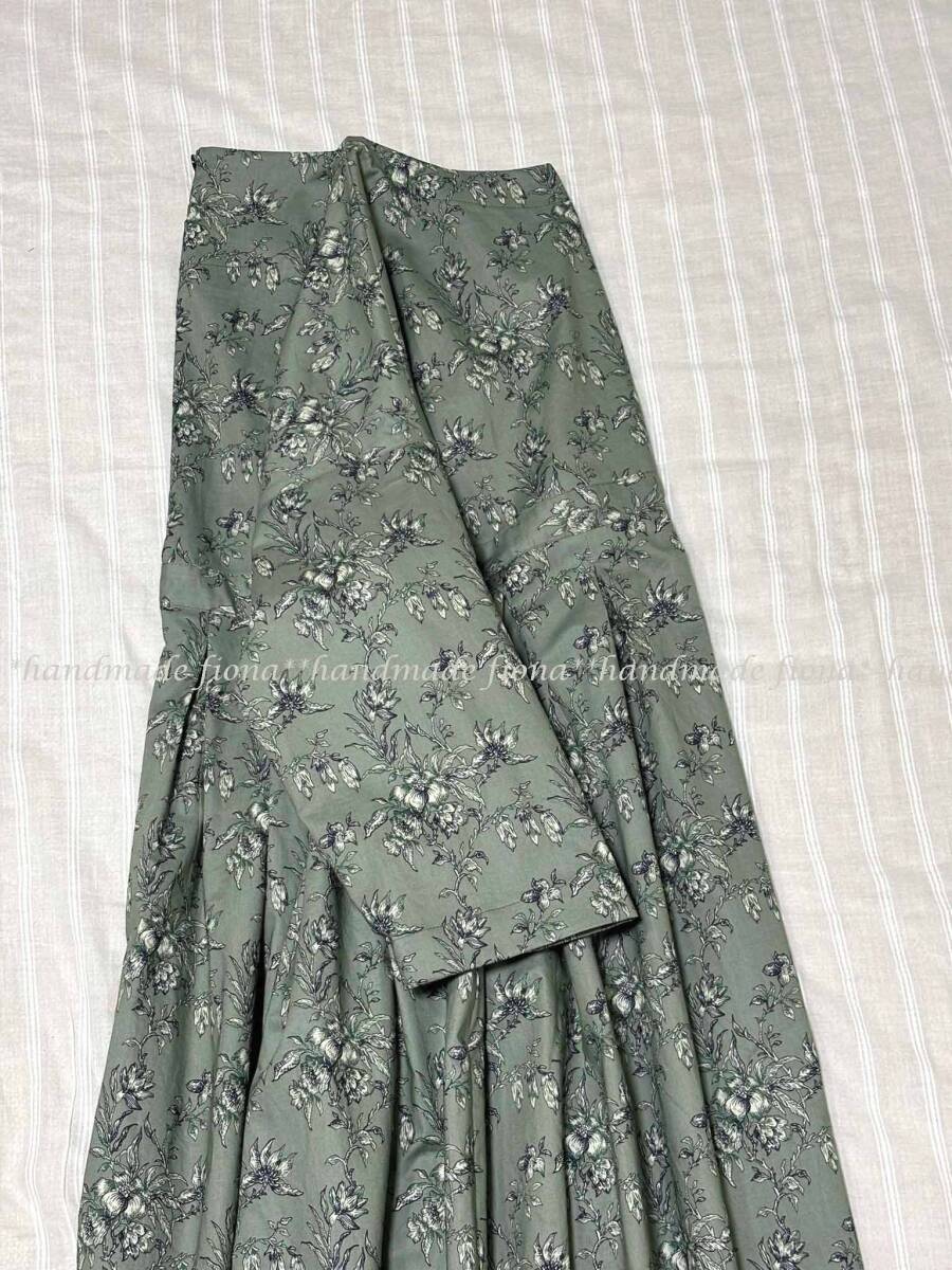 *:. ハンドメイド cotton 線画flower アッシュグリーン タックOP .:*