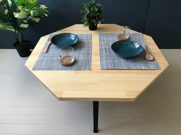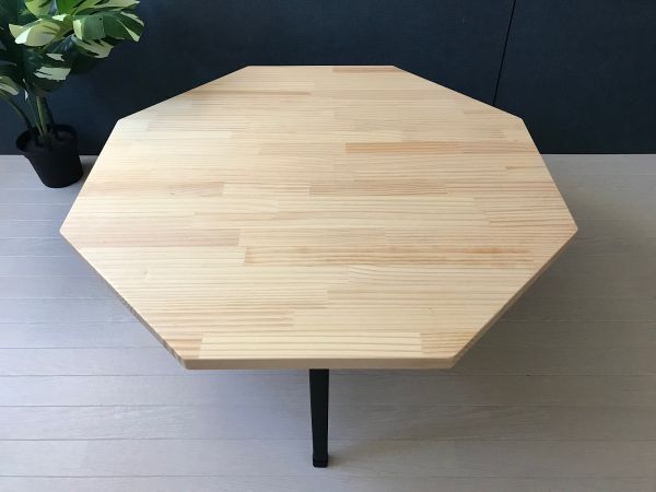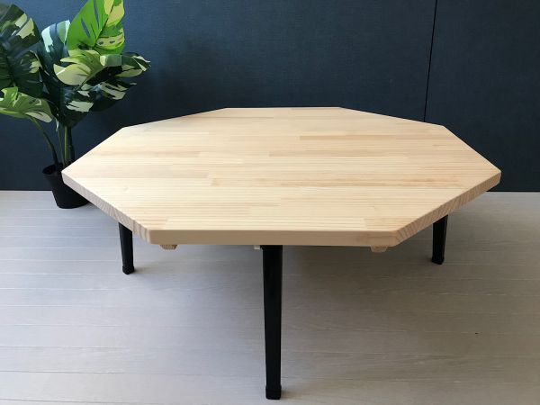 ◎上品な木目が特徴の、パイン材を天板に使用した8角ローテーブルです。