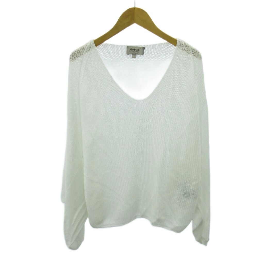 アルマーニ コレツィオーニ ARMANI COLLEZIONI ニット カットソー 薄手 長袖 L 白 ホワイト 0915 ■YHS4 レディース