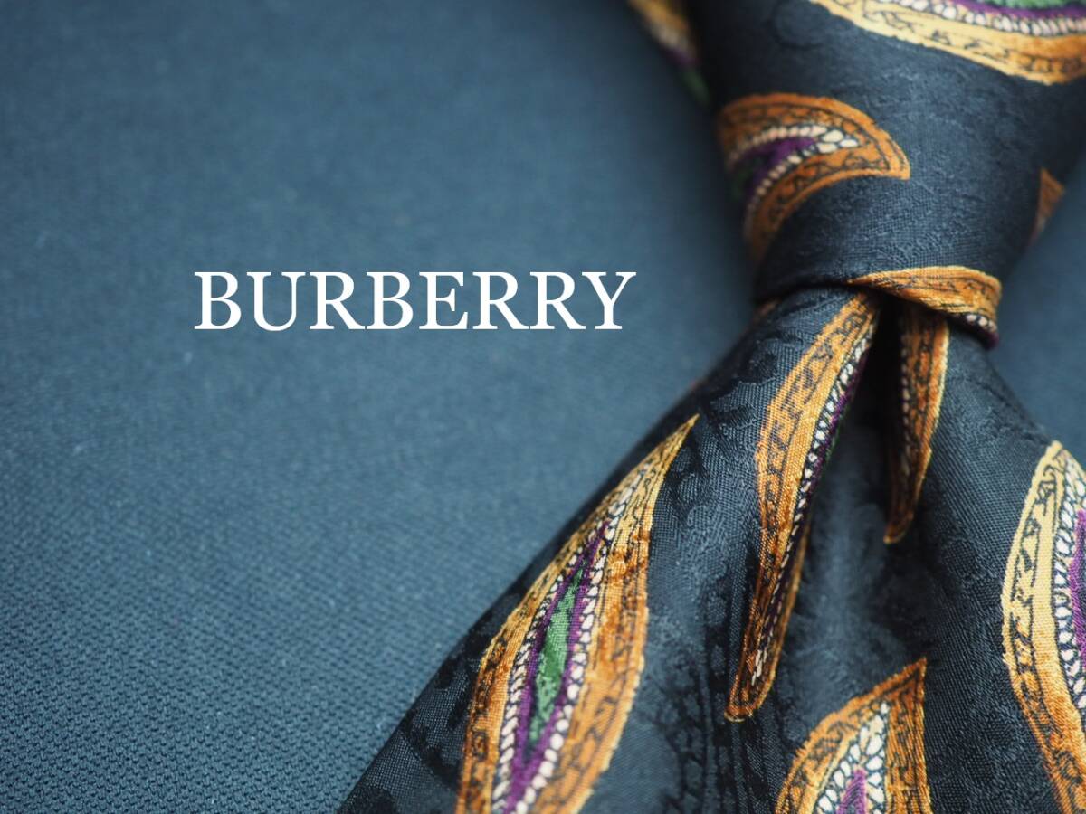 美品【BURBERRY バーバリー】 F2309 USA ブラック ブラウン系 SILK ブランド ネクタイ 古着 良品 転売 仕入