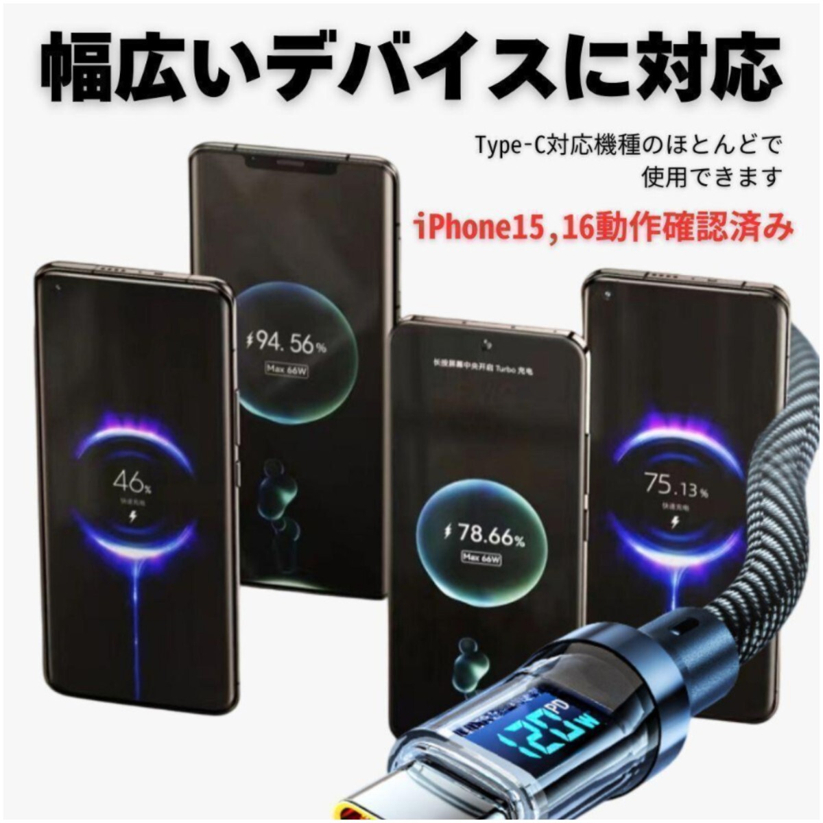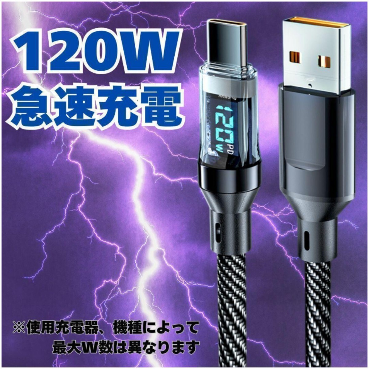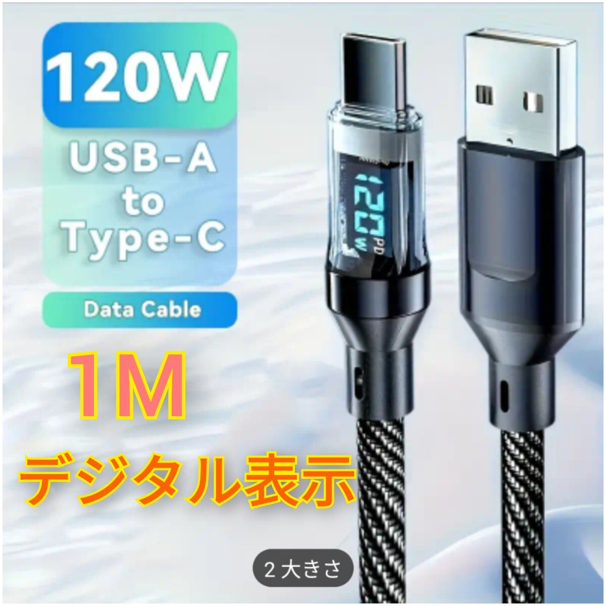 『USB ケーブル PD 1m Type-A Type-C 急速充電 デジタル表示 120W ブラック 黒』です。