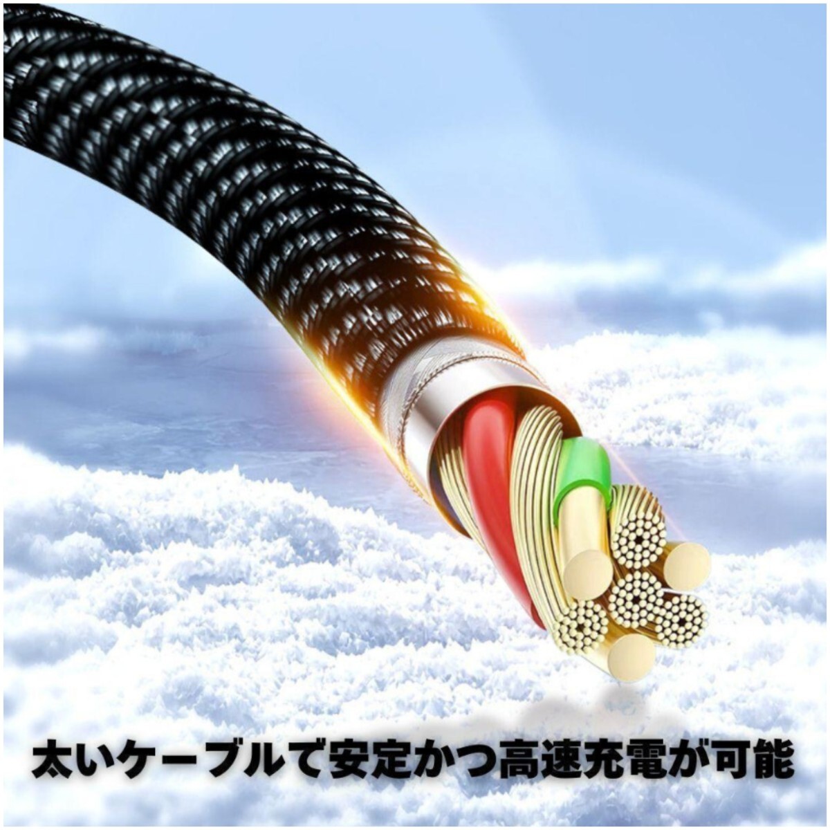 ※ケーブルは急速充電に対応しておりますが、充電器の性能とスマホなどの機器の対応状況によって、充電速度が異なりますのでご了承ください。