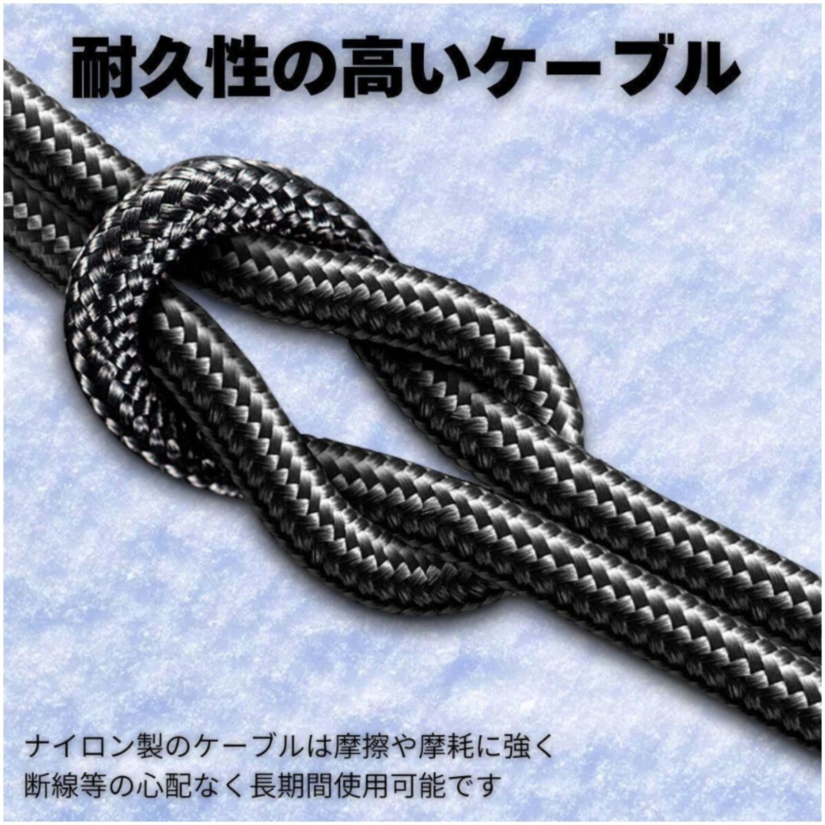 プレミアムナイロン編組タイプのケーブルは耐久性を高め、通常のケーブルよりも、ケーブルが破れにくく、長持ちします。