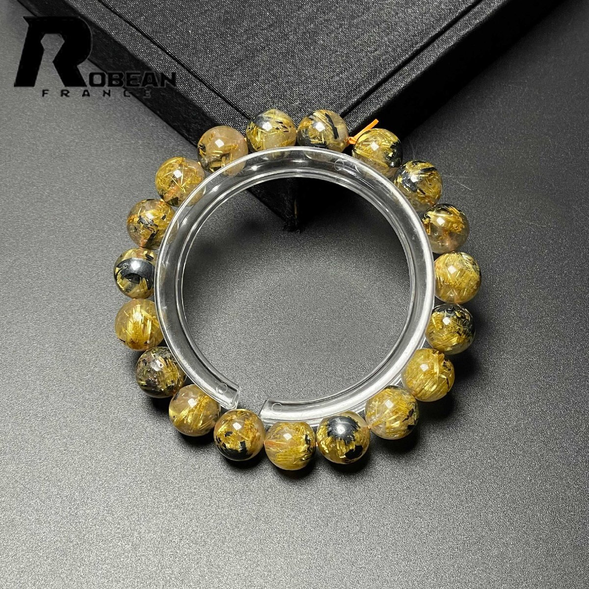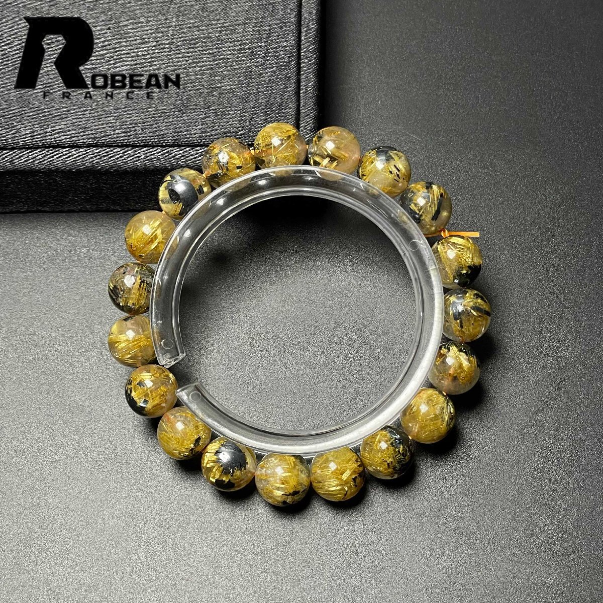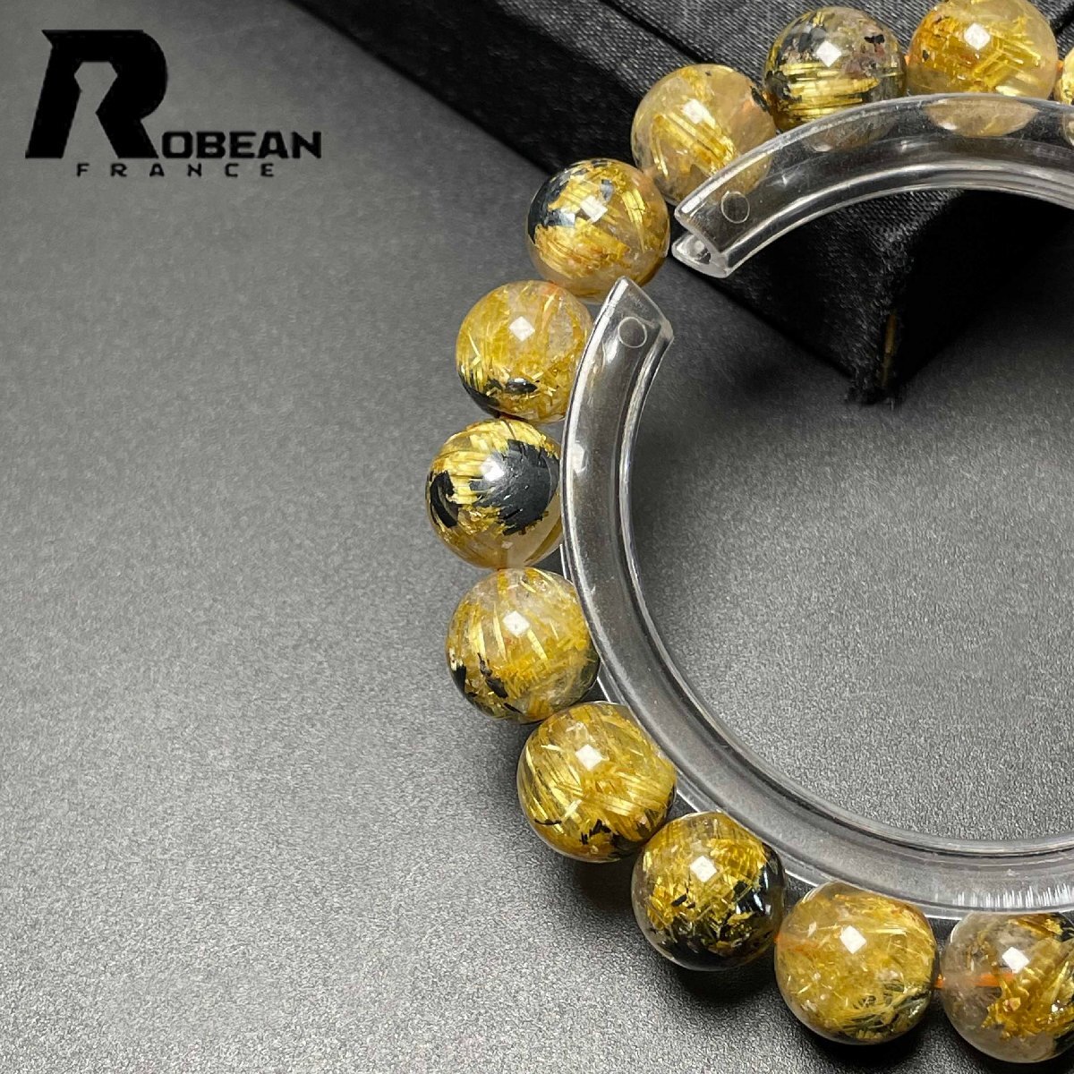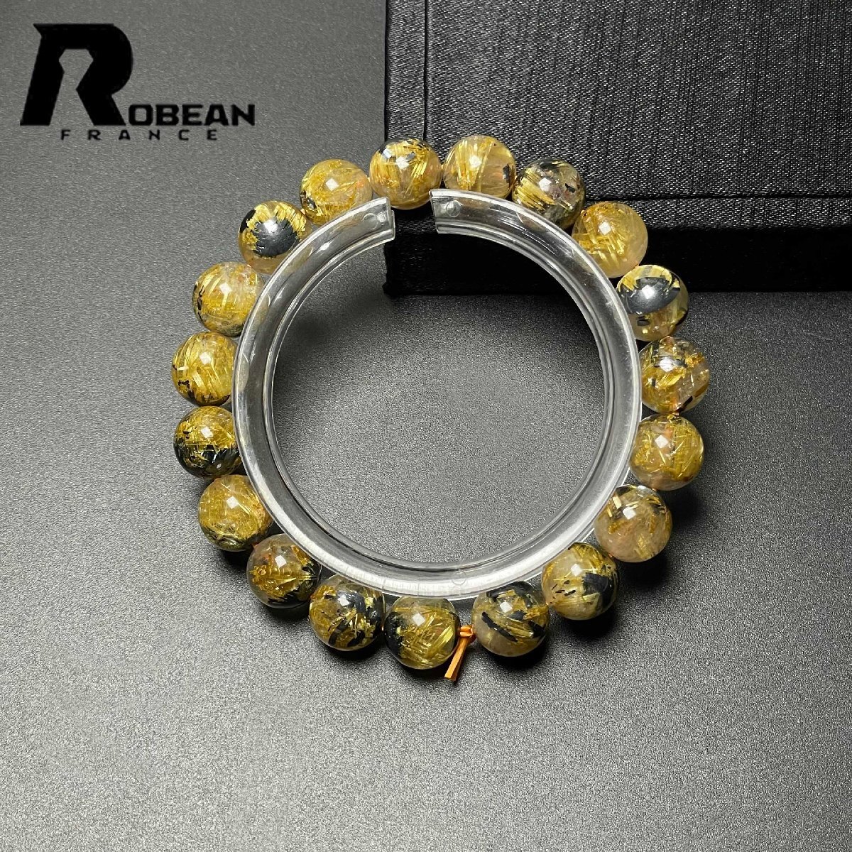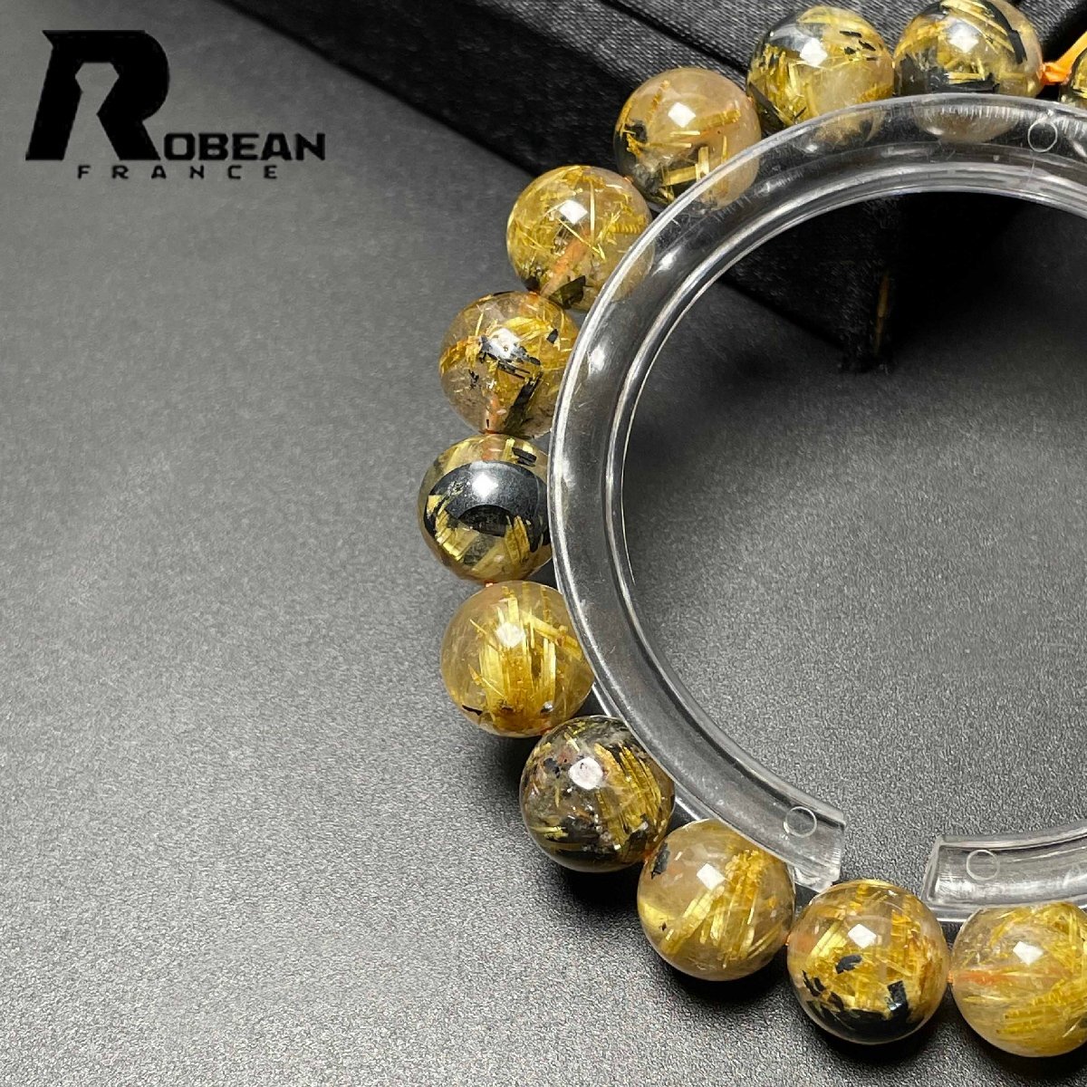 希少 EU製 定価10万円★ROBEAN・太陽花タイチンルチル★黄金針水晶 金運 開運 ゴールド ブレスレット パワーストーン 10.3-10.8mm M081171