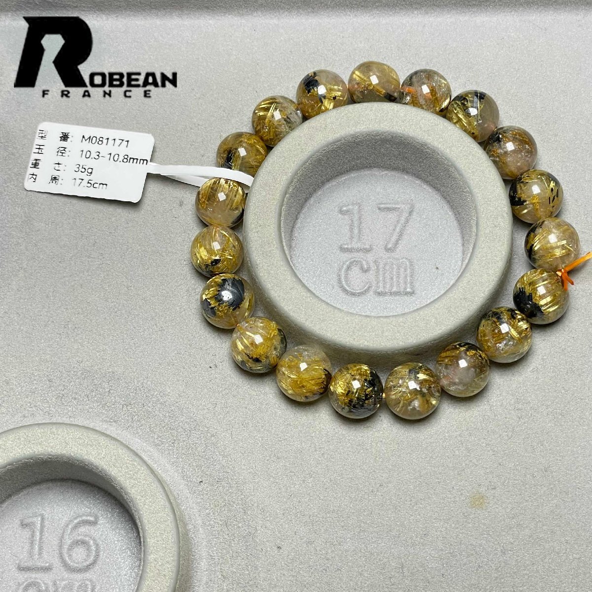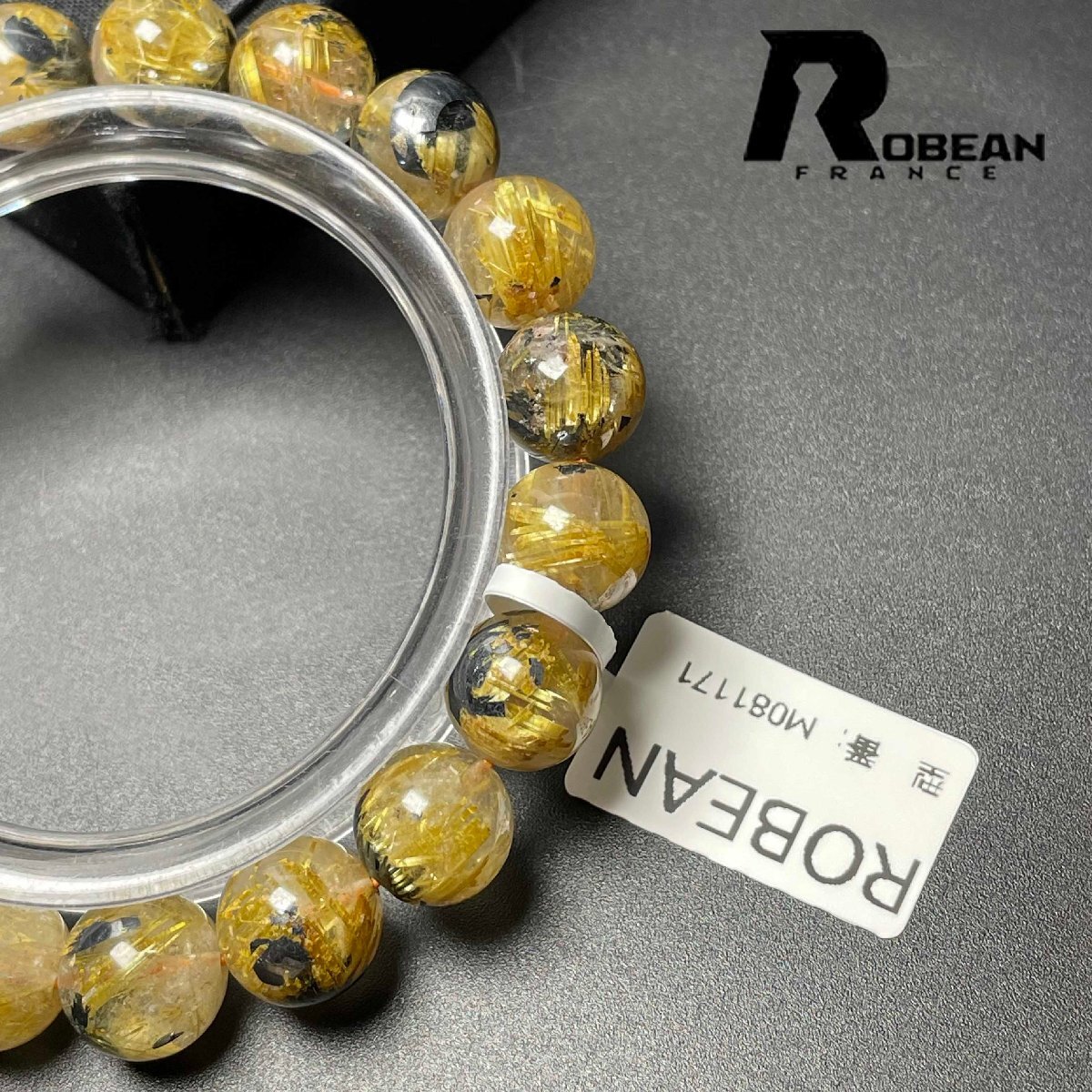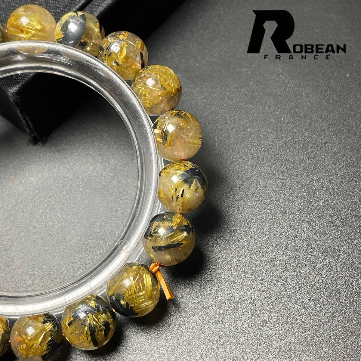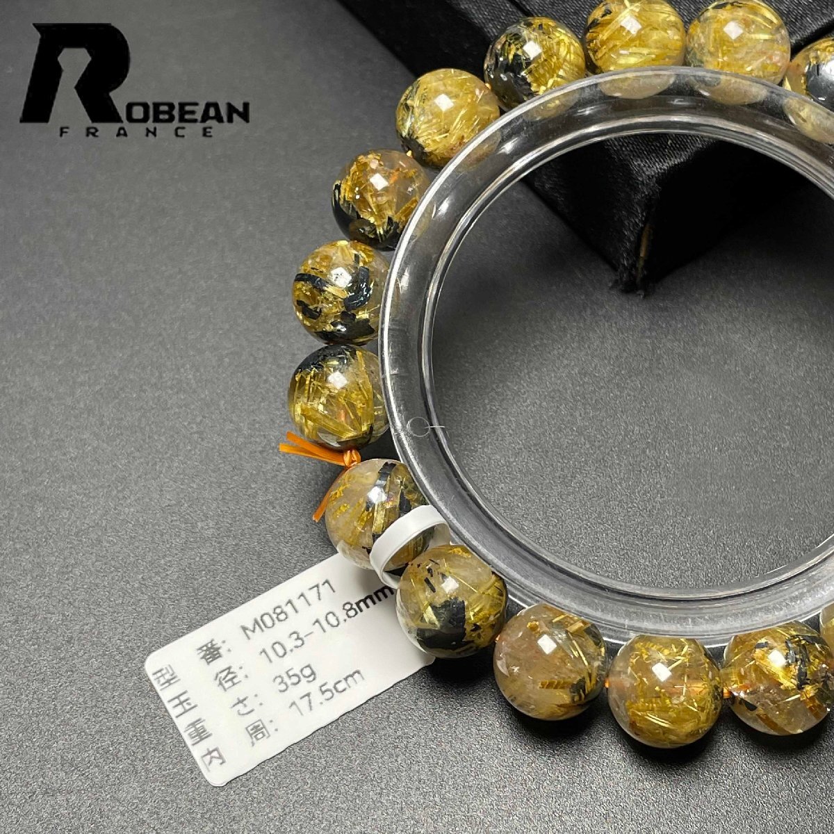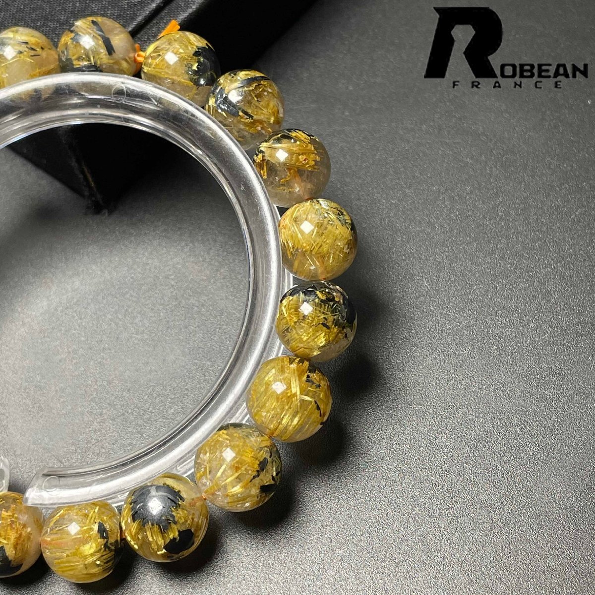 希少 EU製 定価10万円★ROBEAN・太陽花タイチンルチル★黄金針水晶 金運 開運 ゴールド ブレスレット パワーストーン 10.3-10.8mm M081171