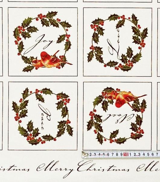 パネルの絵柄は赤い実のヒイラギのリース、リースに止まったカージナル、"Noel"、"Joy"、"Peace"、"Love"と言う文字です。