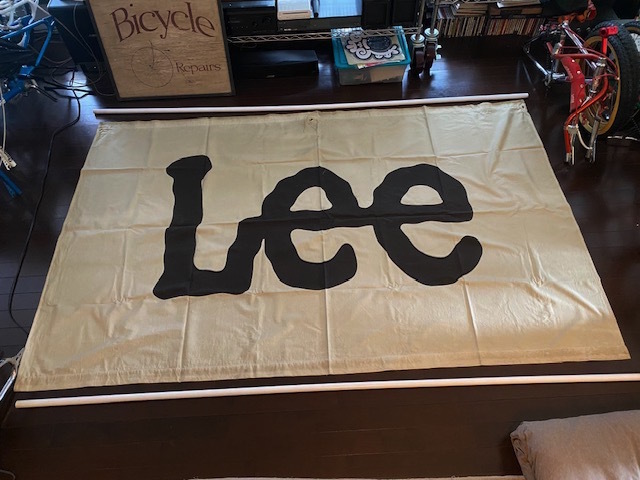 30年前の店頭用 Lee Japan リー・ジャパン ビッグ・バナー 横2m26cmX高さ1m40cm 上下ポール2m31cm フラッグ 旗 広告