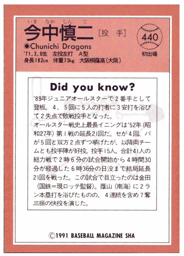 ★ 即決! 1991 All Stars 今中慎二【P】カード #440 ★