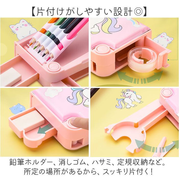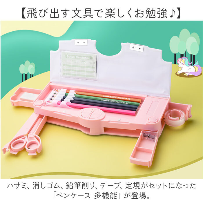 | 商品説明 | ・・【飛び出す文具で楽しくお勉強♪】 ・ハサミ、消しゴム、鉛筆削り、テープ、定規がセットになった「ペンケース 多機能」が登場。 ・【必要なアイテムをひとまとめに!】 ・これ1つで必要な文具がそろう、充実の機能性◎コンパクトに文具を持ち歩ける、優れモノ。 ・【スイッチつきでやる気UP!】 ・スイッチを押すと、5つのアイテムが飛び出す仕組み。小学生のやる気をグッと刺激する! ・※飛び出すアイテムは、消しゴム、ハサミ、テープ、定規、鉛筆削りです。 ・【片付けがしやすい設計◎】 ・鉛筆ホルダー、消しゴム、ハサミ、定規収納など。所定の場所があるから、スッキリ片付く! ・【気分がアガる♪イラストデザイン】 ・男の子も女の子もお気に入りが見つかる、豊富なデザイン。学校やお勉強をもっと楽しく! ・【パチッとマグネット式で扱いやすい】 ・マグネットを2箇所に配置。パチッと簡単に開閉ができ、1年生でも使いやすい◎ ・【ギフトにもオススメ☆】 ・入学祝いや進級祝いの贈り物にもぴったり!実用的なアイテムだからきっと喜ばれる! ・※付属品:消しゴム、ハサミ、テープ、定規、鉛筆削り、時間割表が付属します。 |