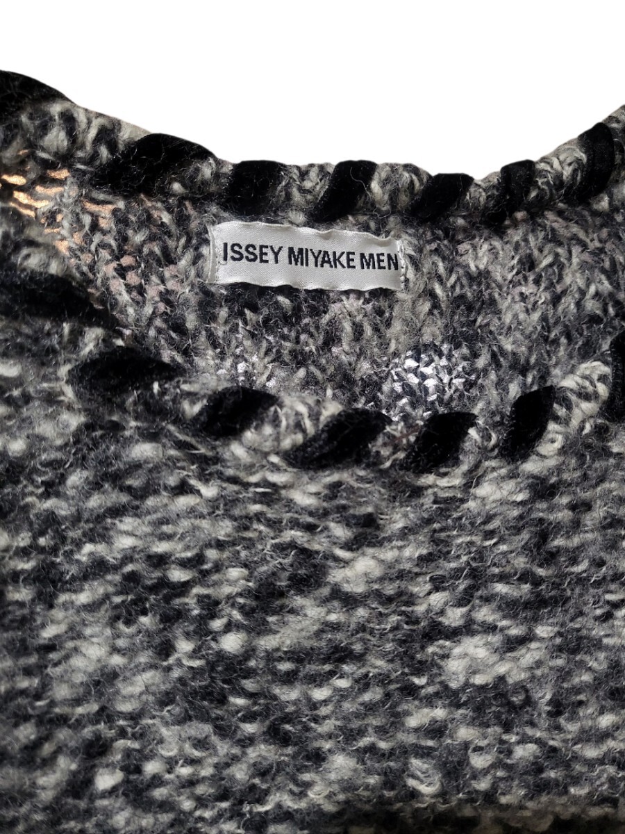 イッセイミヤケメン2007秋冬コレクションラインのベロアの編込みデザイン、ローゲージ、ベースボール縮絨ニット。