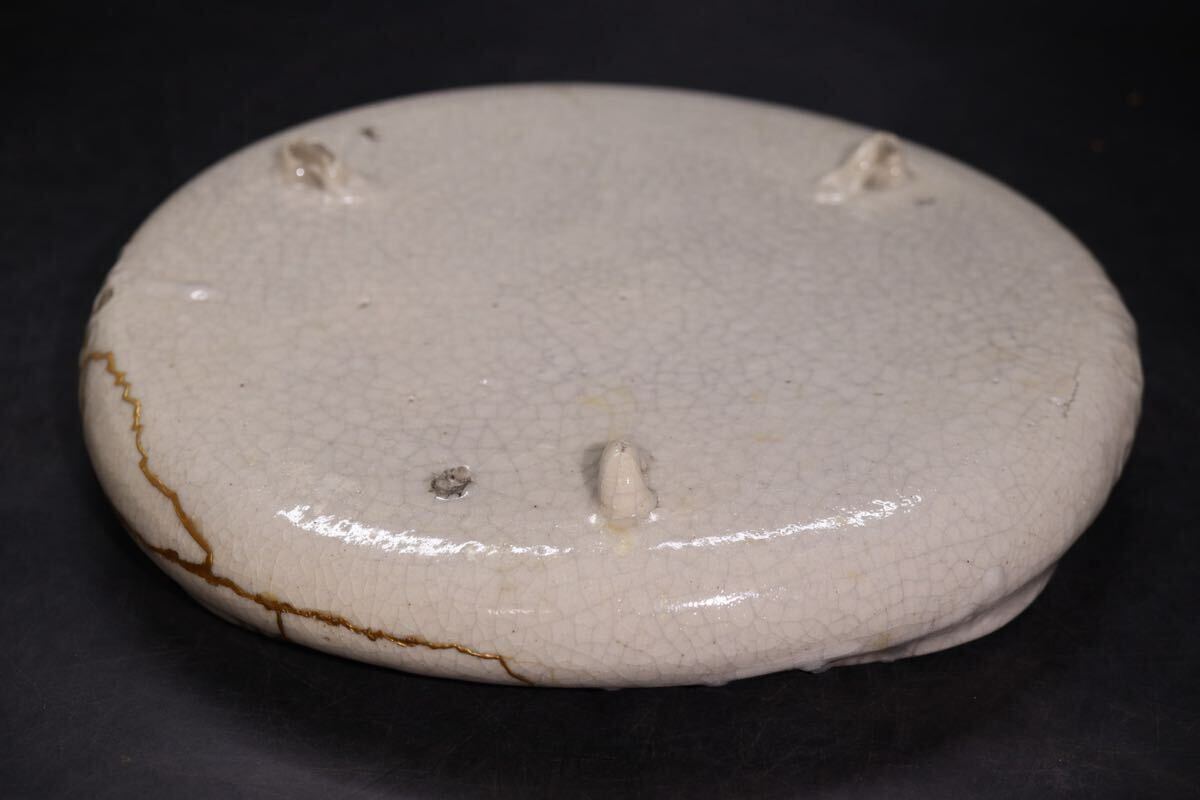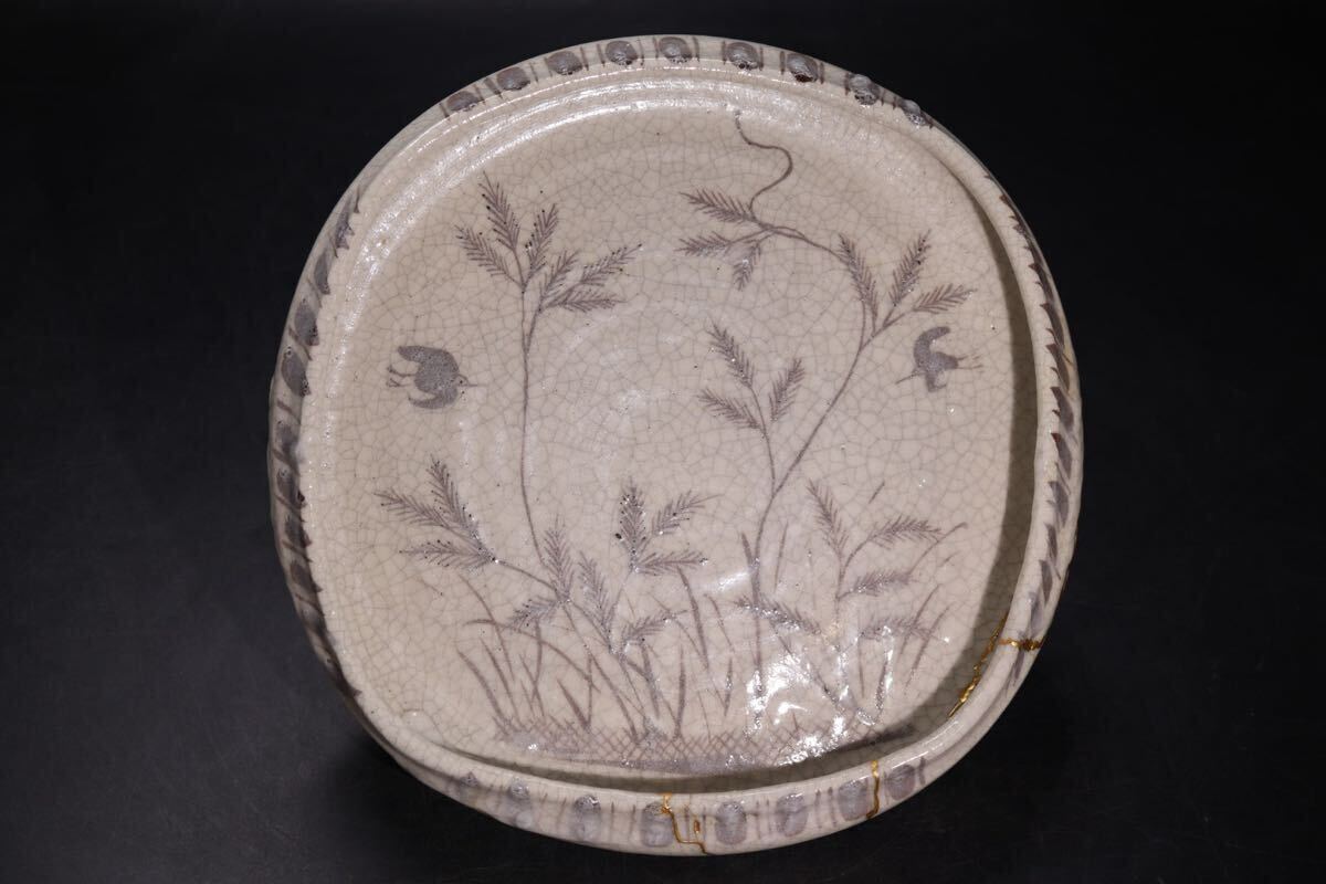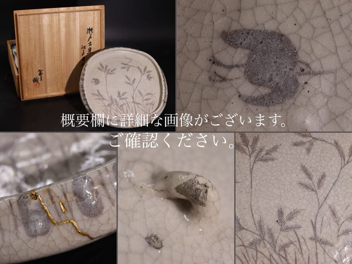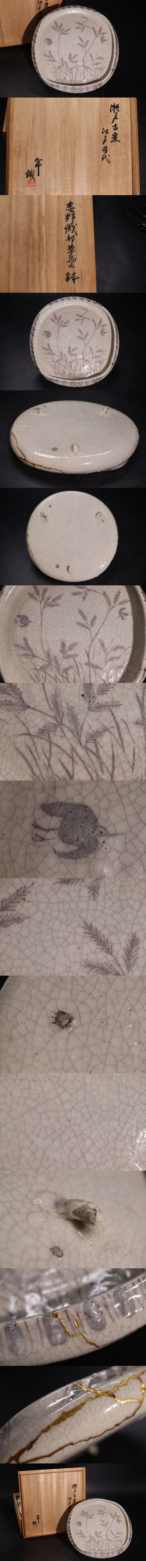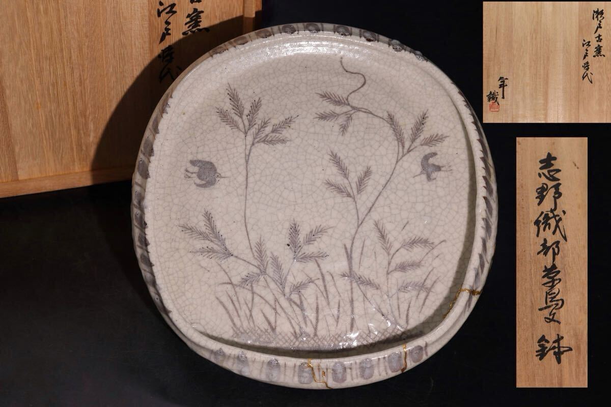 | 加藤卓男 識箱 「 志野 織部 草鳥文 鉢 瀬戸古窯 江戸時代 」 金継ぎ 識箱付 / 古志野 煎茶道具 .G2634 |