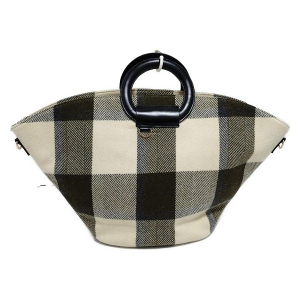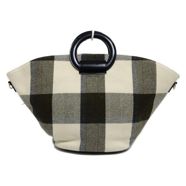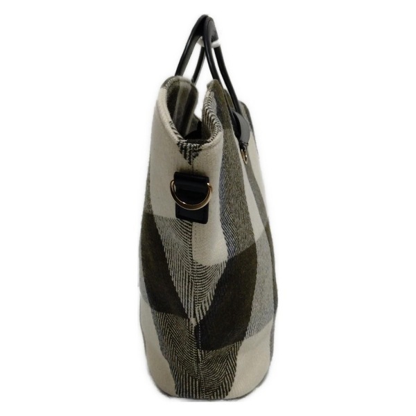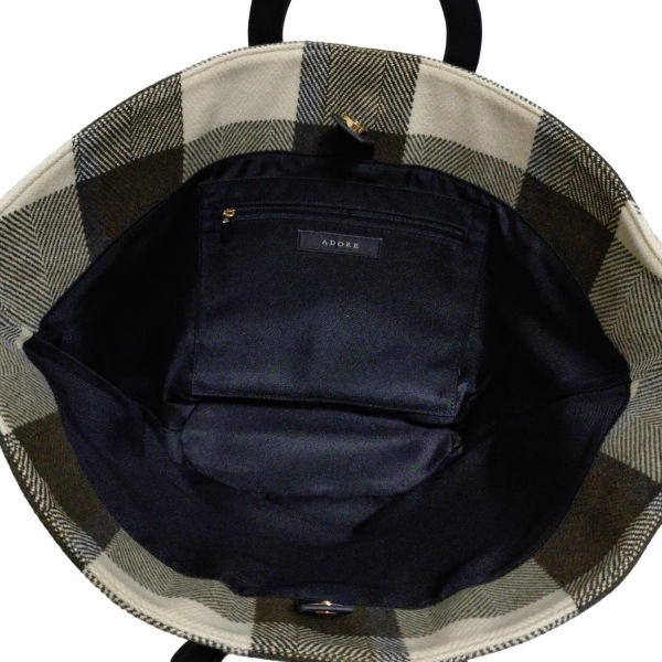 アドーア ADORE トートバッグ - ウール、レザー アイボリー×黒×マルチ チェック柄 バッグ
