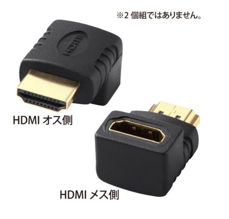 HDMIアダプタ L型 90° 変換コネクタ 金メッキ(下) 黒