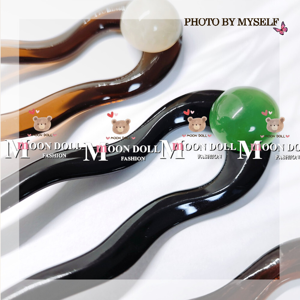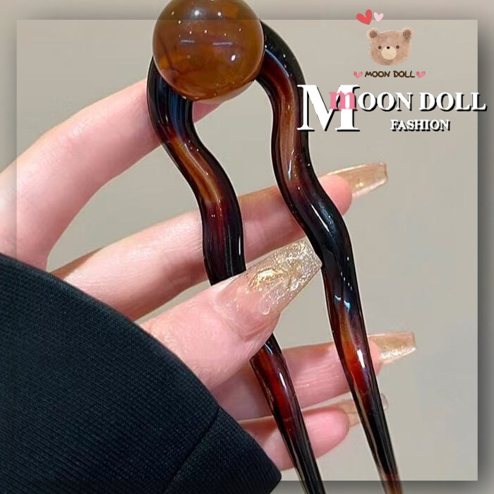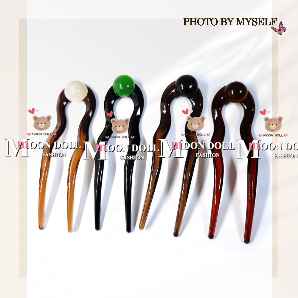 丸かんざし/髪留め/髪飾り/マーブル玉/U字かんざし/茶 | |||