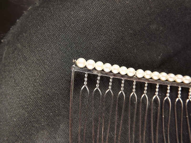 品 名: 和装小物 K14WG/パールカラー 髪飾り 簪 髪差し 状態他:約横7.6㎝×3.6㎝ 重さ 約6.1g 簡易洗浄済 簪裏に K14WG刻印/パールカラー玉 約3.4㎜×20個 各所に小傷や汚れがみられます(ルーペ確認) ※パールカラー玉の種類他鑑定に出しておりませんので詳細につきまして わかりかねます。 古物・年代物の出品となりますので商品説明他、各画像をよくご確認のうえ 記載内容をご理解いただける方のみご入札をお願いいたします。 完品をお求めの方、細かな事が気になる方、神経質な方のご入札は ご遠慮ください。 | |||